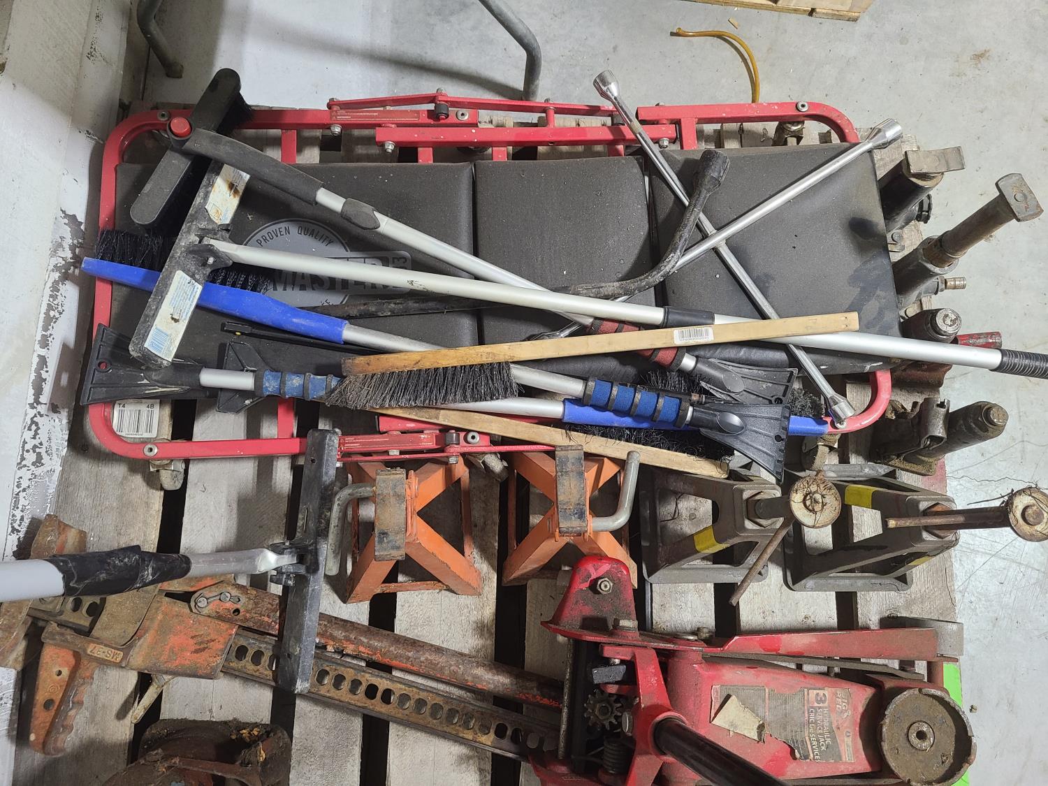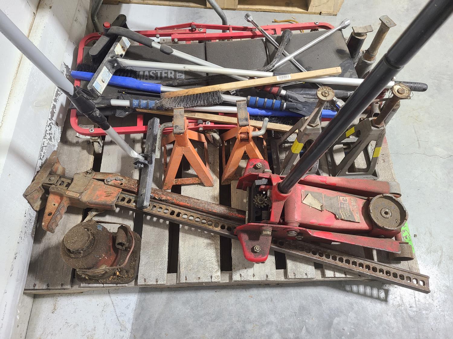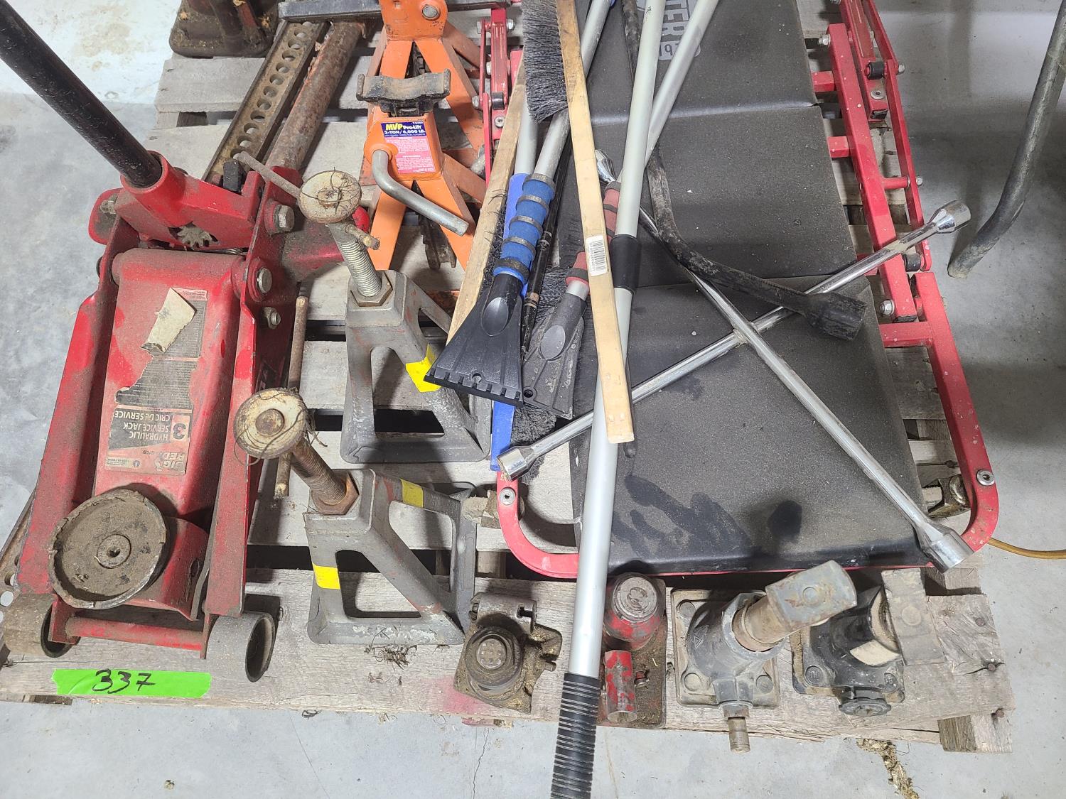 3 ton floor jack, (4) jack stands, (2) bottle jacks, creeper & snowbrushes