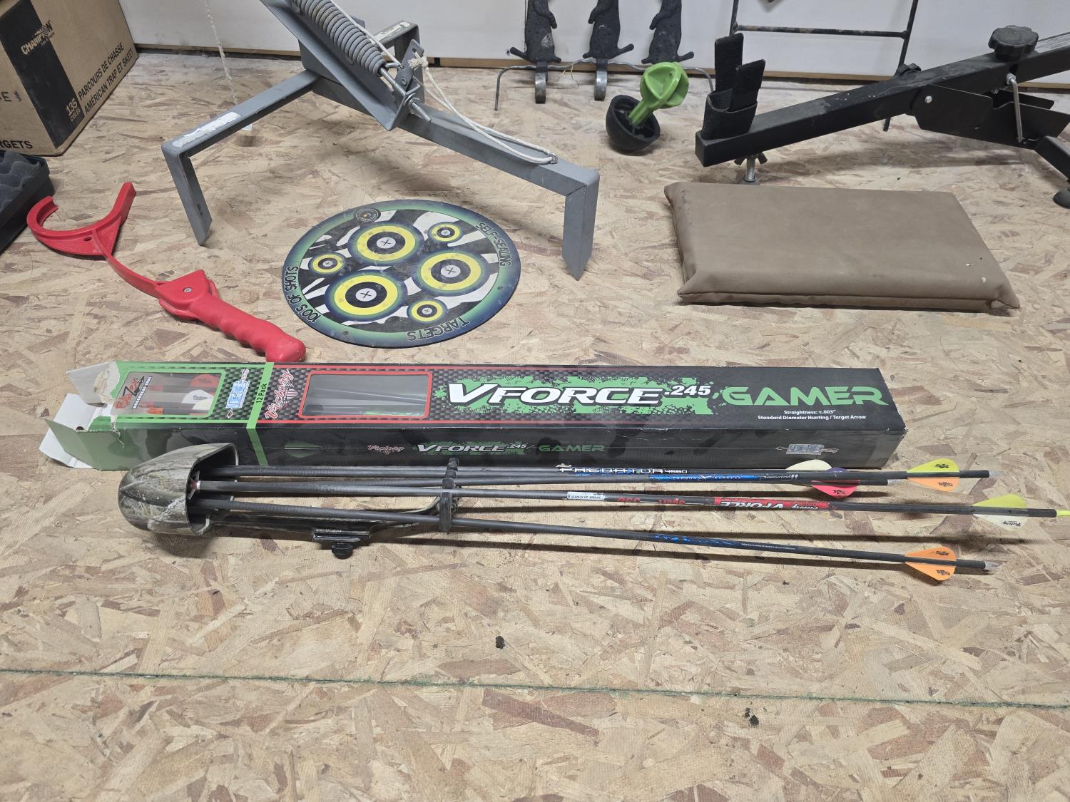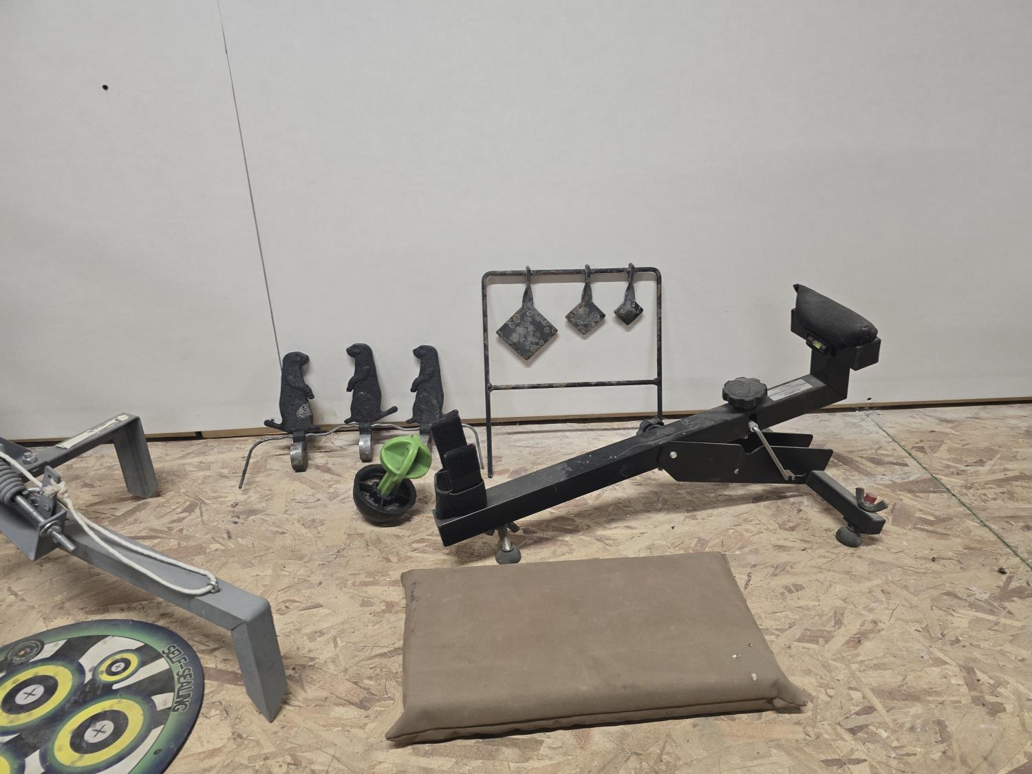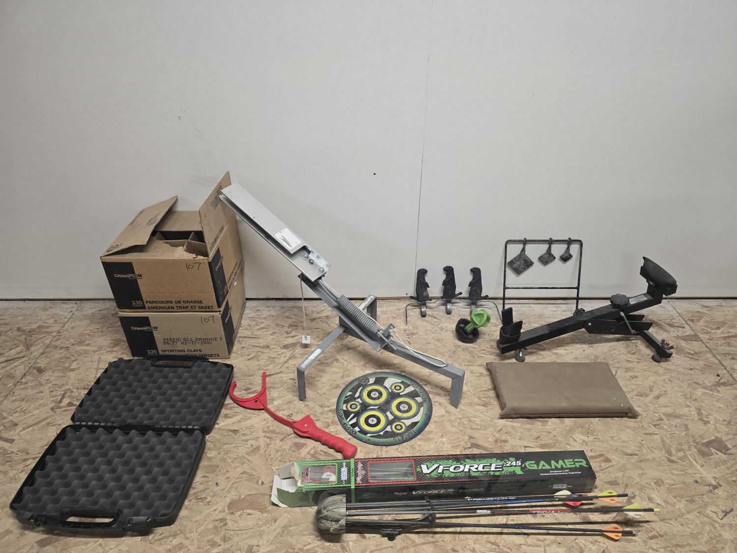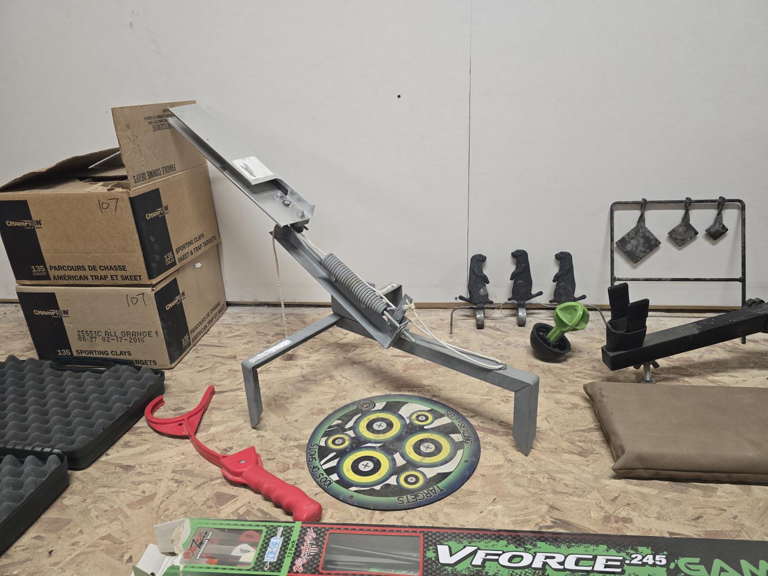clay pigeons, clay pigeon thrower, miscellaneous targets, arrows, gun case