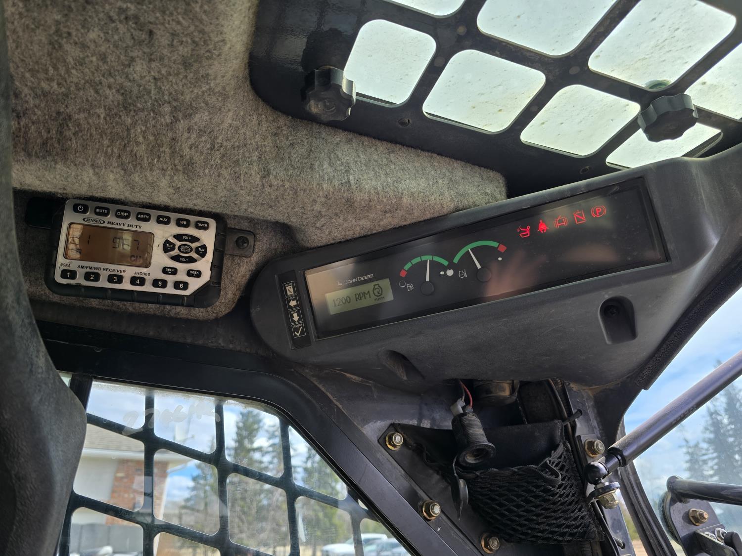 Enclosed cab, air ride seat, diesel engine, cab screens, radio, 84 inch smooth bucket, high flow hydraulics, 18 inch rubber tracks