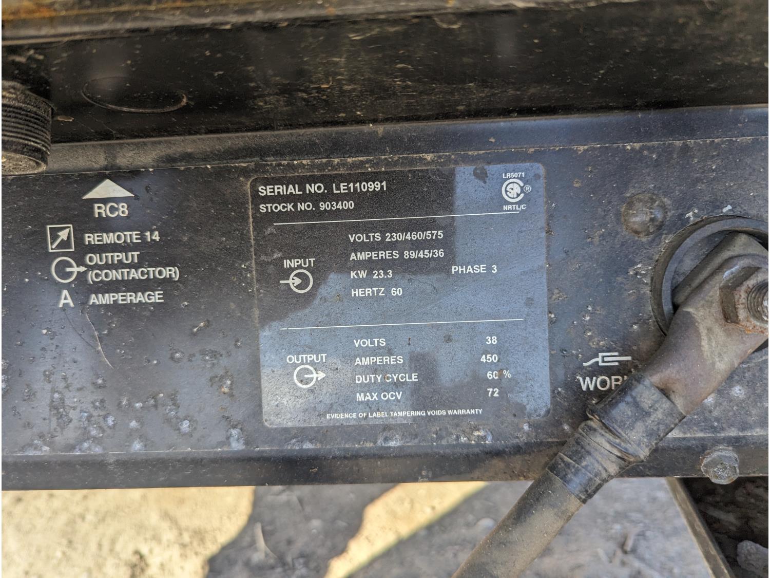 230/460/575 volts, 89/45/36 amps, 23.3 KW, 3 phase, 60% duty cycle