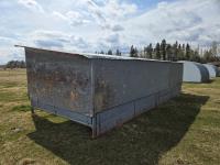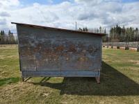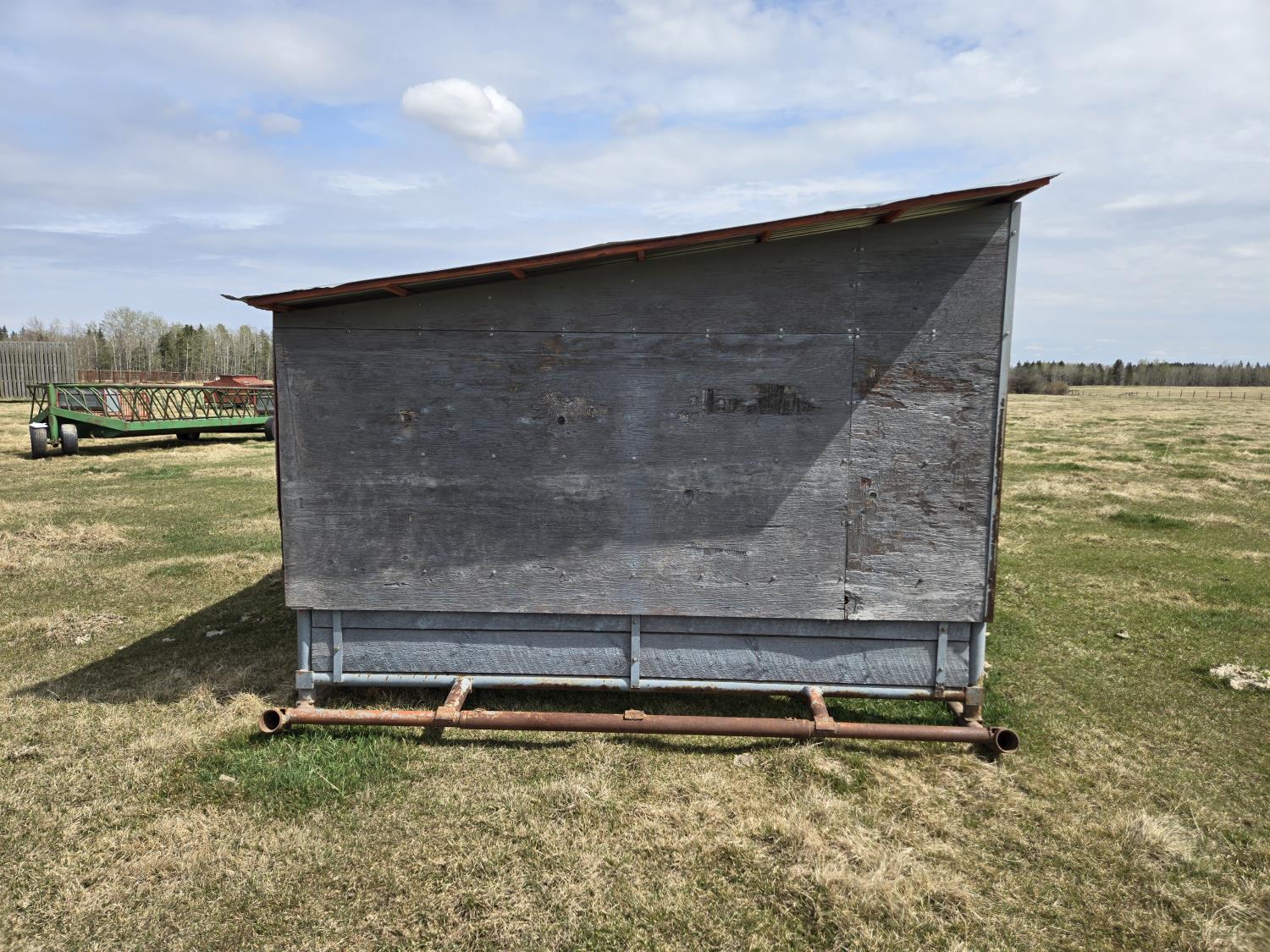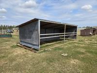 10 ft wide, 2-7/8 inch pipe frame and skids, small poly feed trough, metal roof plywood sides