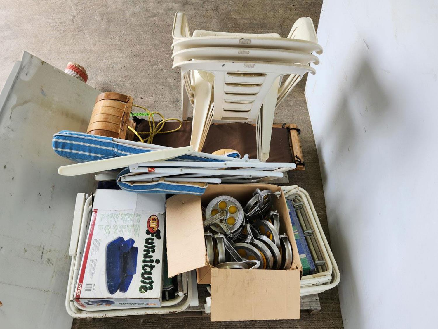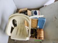 87 (4) Poly Chairs, Toboggan, Inflatable Couch, Clothesline Pulleys