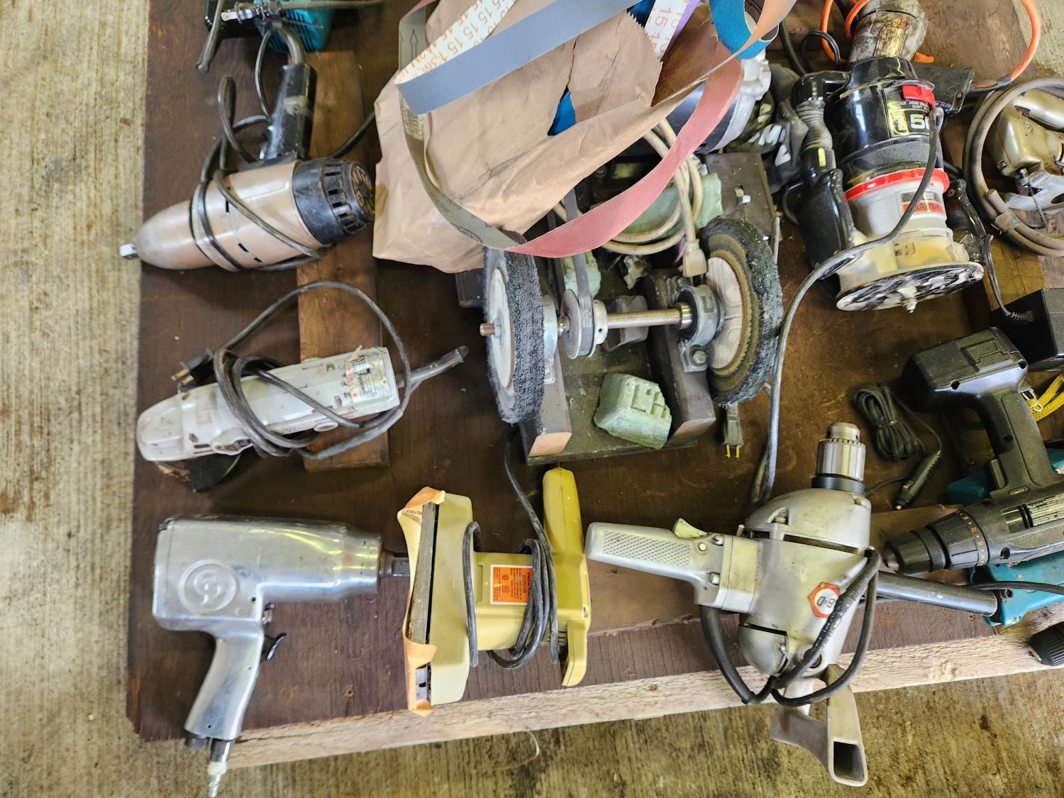 Drills, grinders, router, buffer, impact wrenches, sander, jig saws