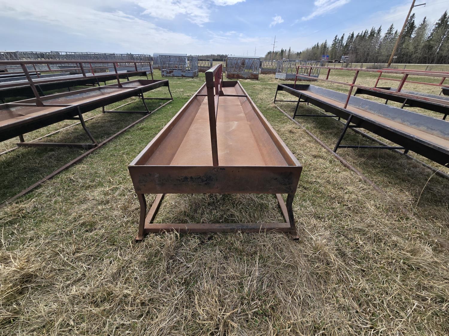 Square tube skids, square tube frame, 40 inch wide metal feed bunk trough, center two rail barrier