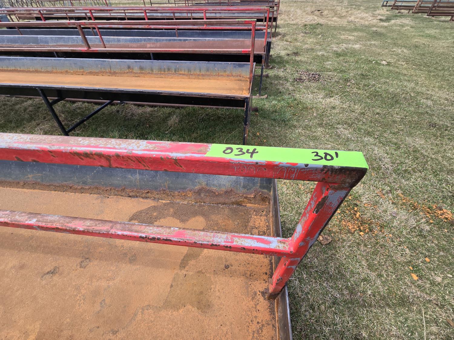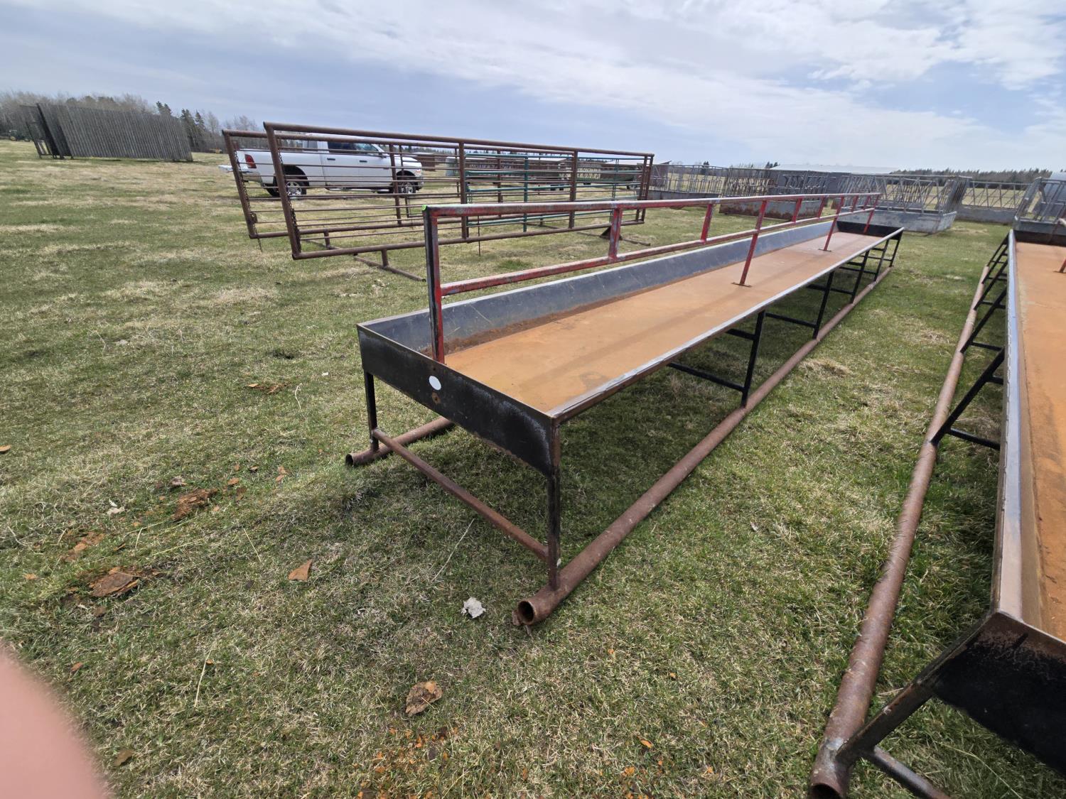2-7/8 pipe skids, square tube frame, 40 inch wide metal feed bunk trough, center two rail barrier