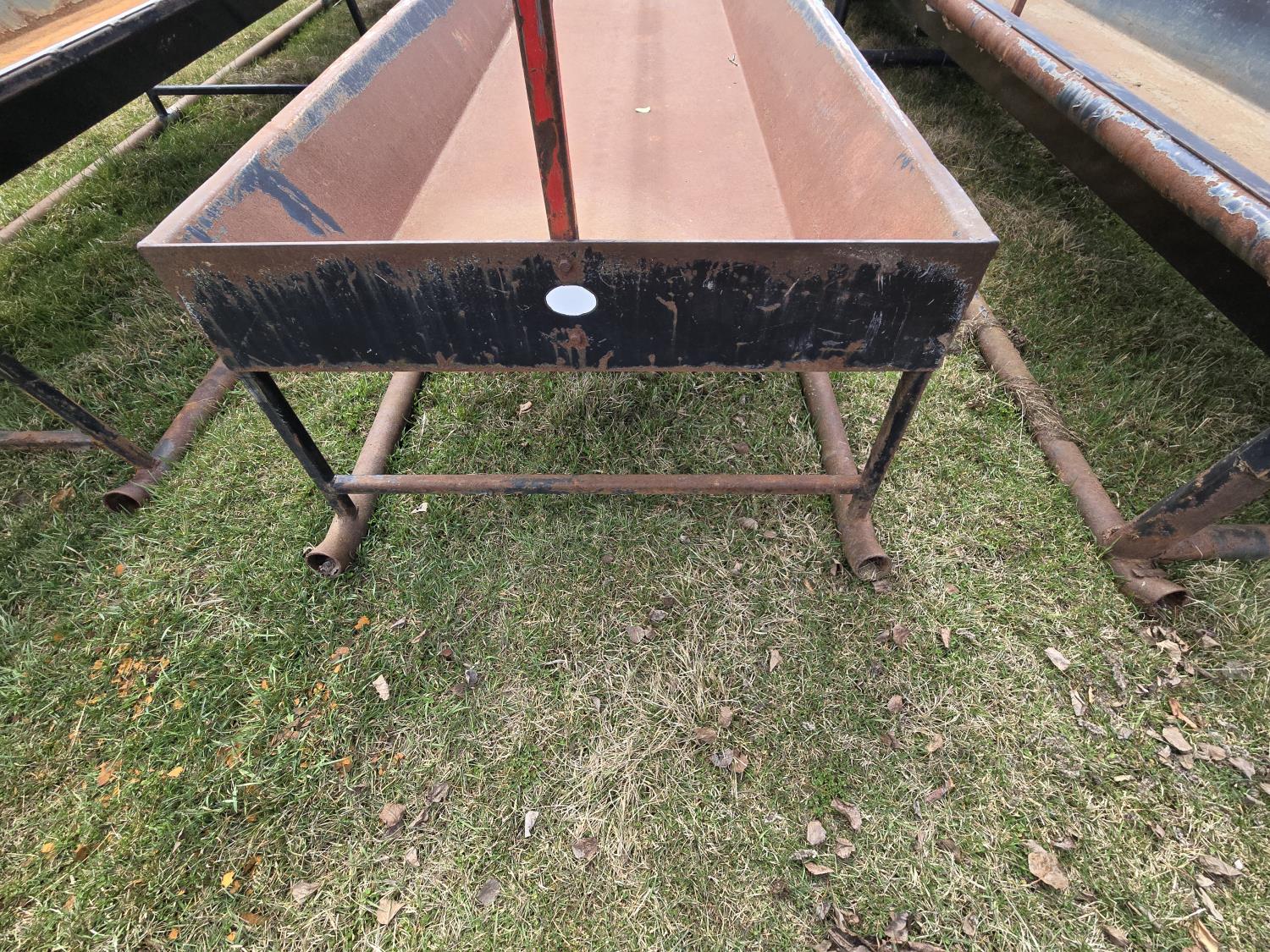 2-7/8 pipe skids, square tube frame, 40 inch wide metal feed bunk trough, center two rail barrier