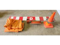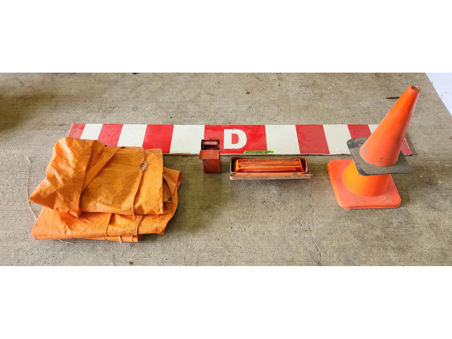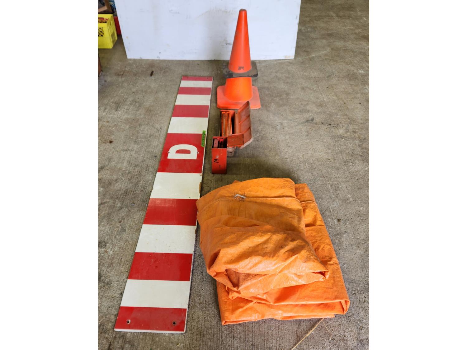(2) pylons, road flares, tarp