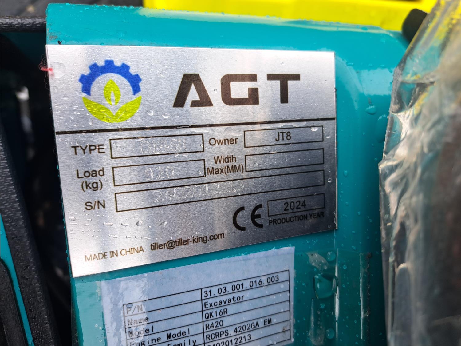 3158 2024 AGT QK16R 1 Ton Mini Excavator (Unused)
