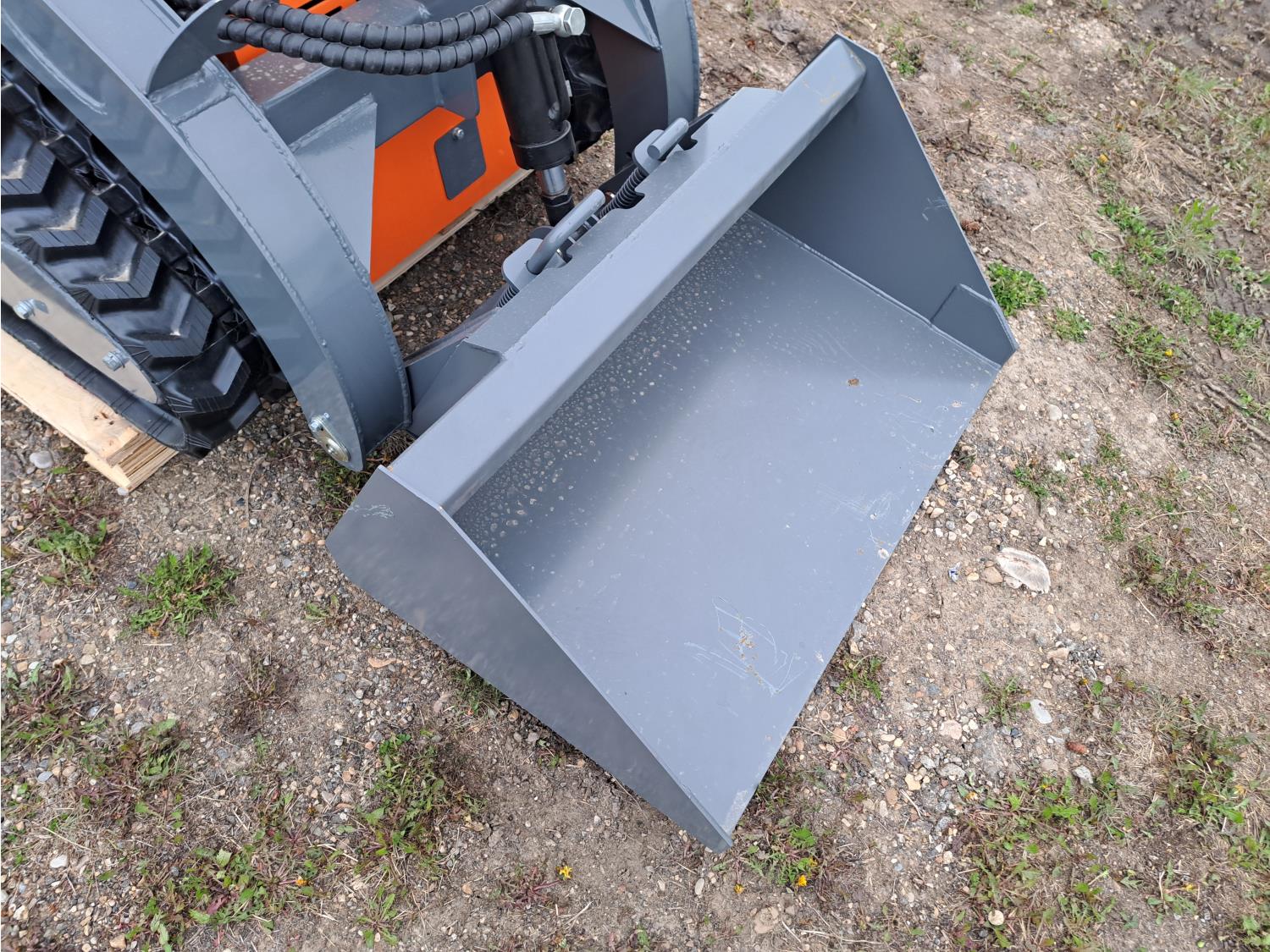 Open station, pilot controls, gas engine, 39.25 inch smooth bucket, Quick attach bucket, 9 inch rubber tracks