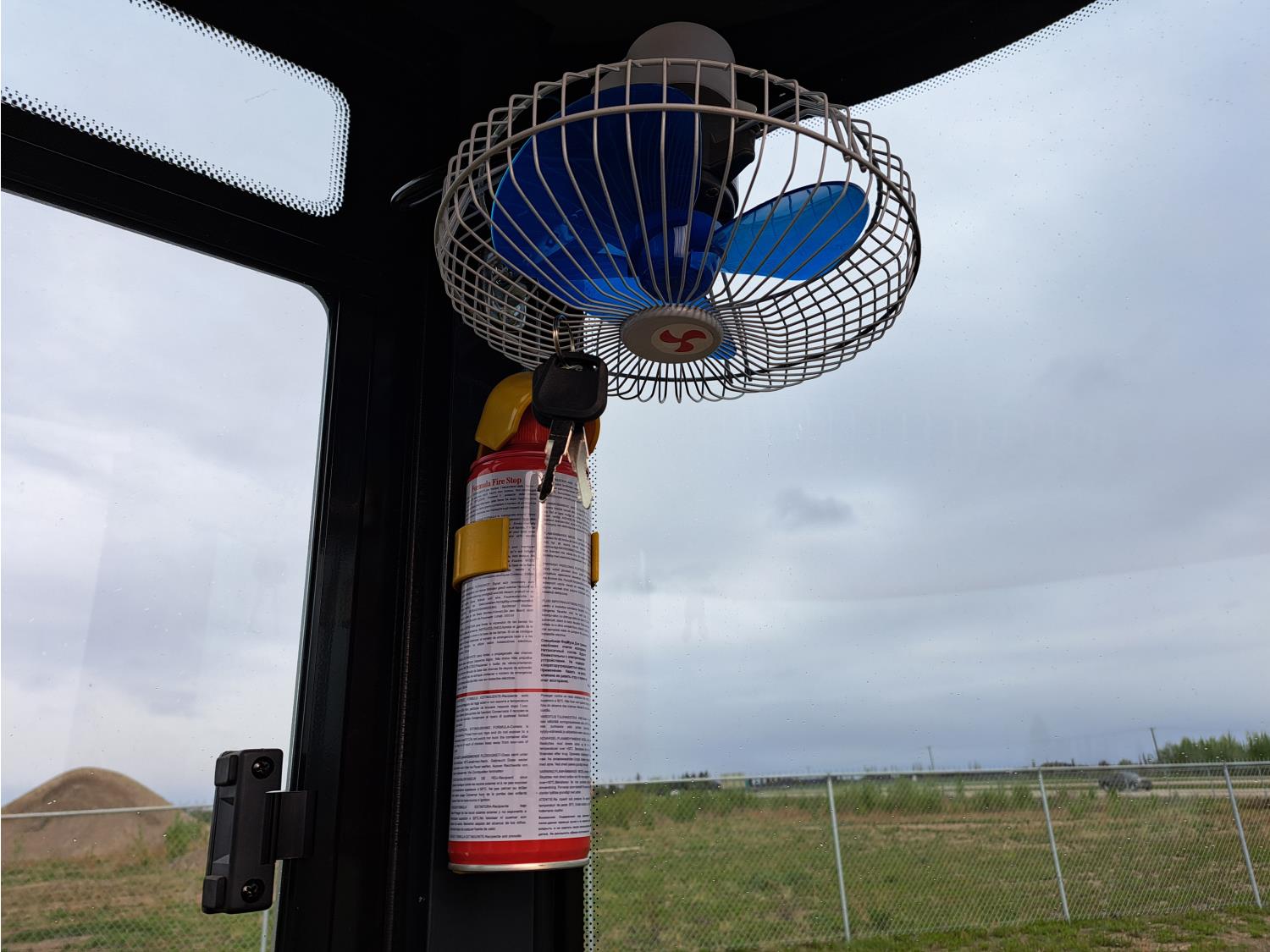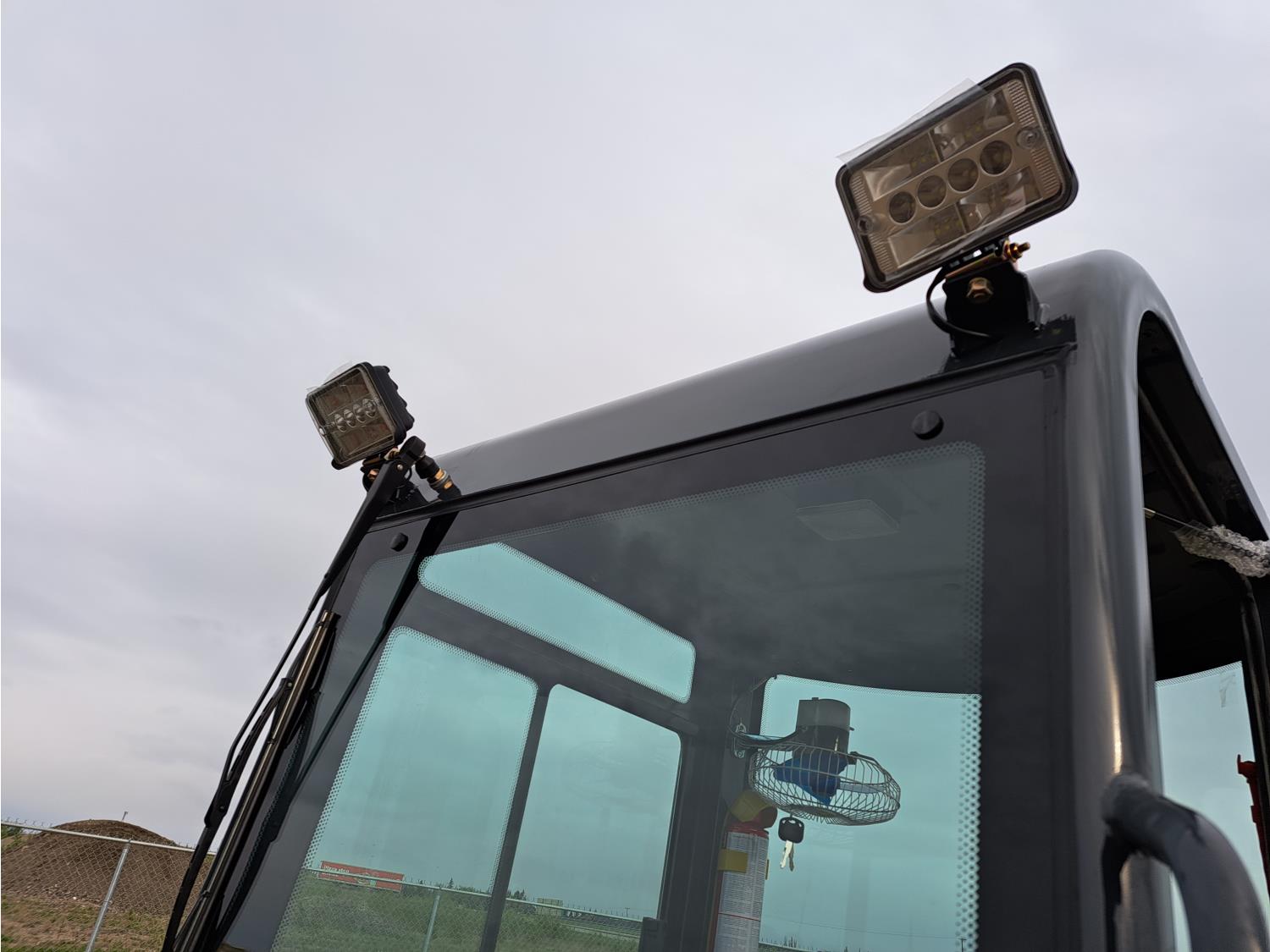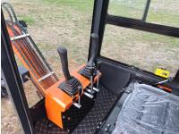 Enclosed cab, pilot controls, gas engine, bucket, manual thumb