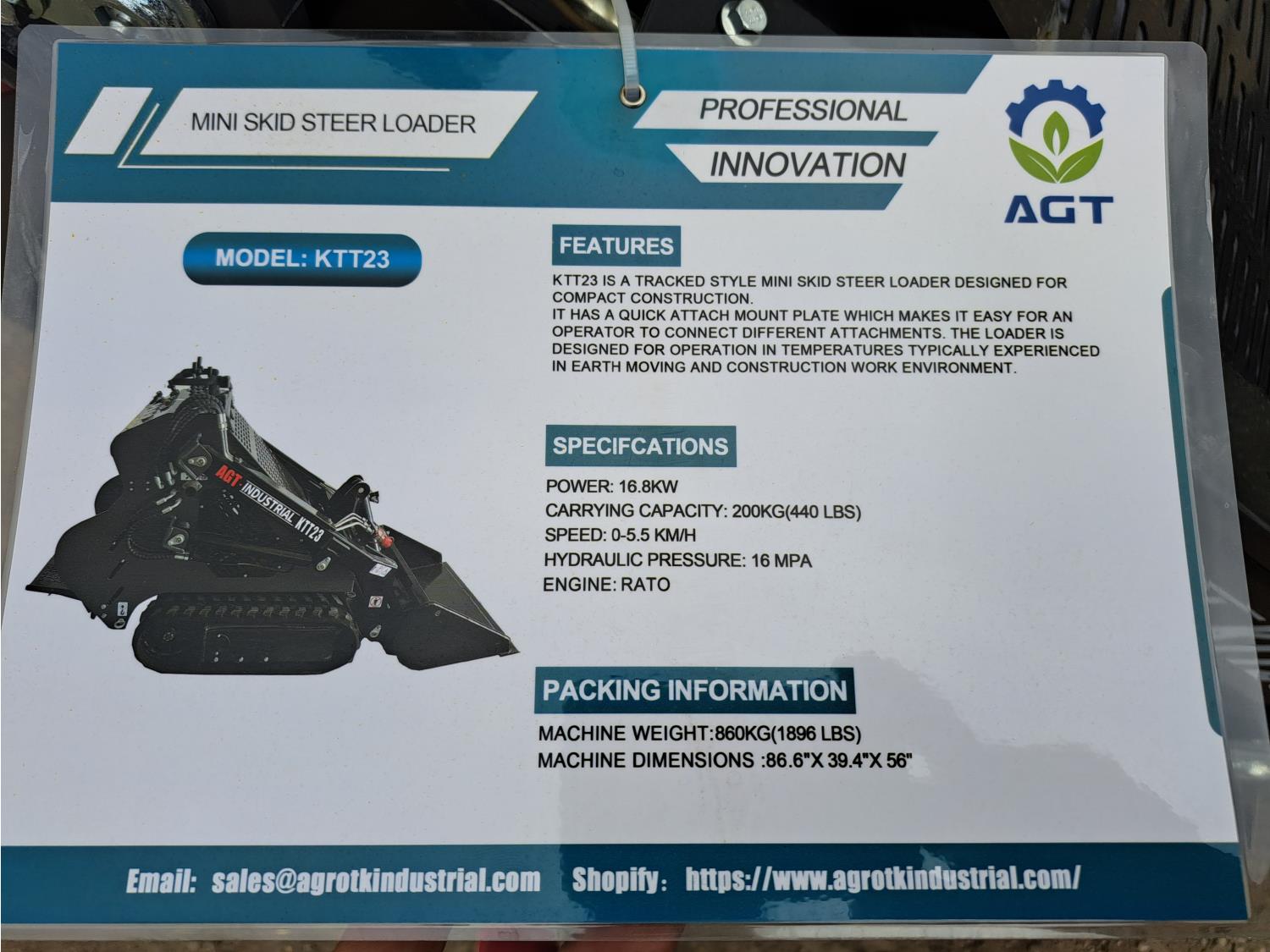3144 2024 AGROTK KTT23 Mini Stand On Tracked Skid Steer (Unused)