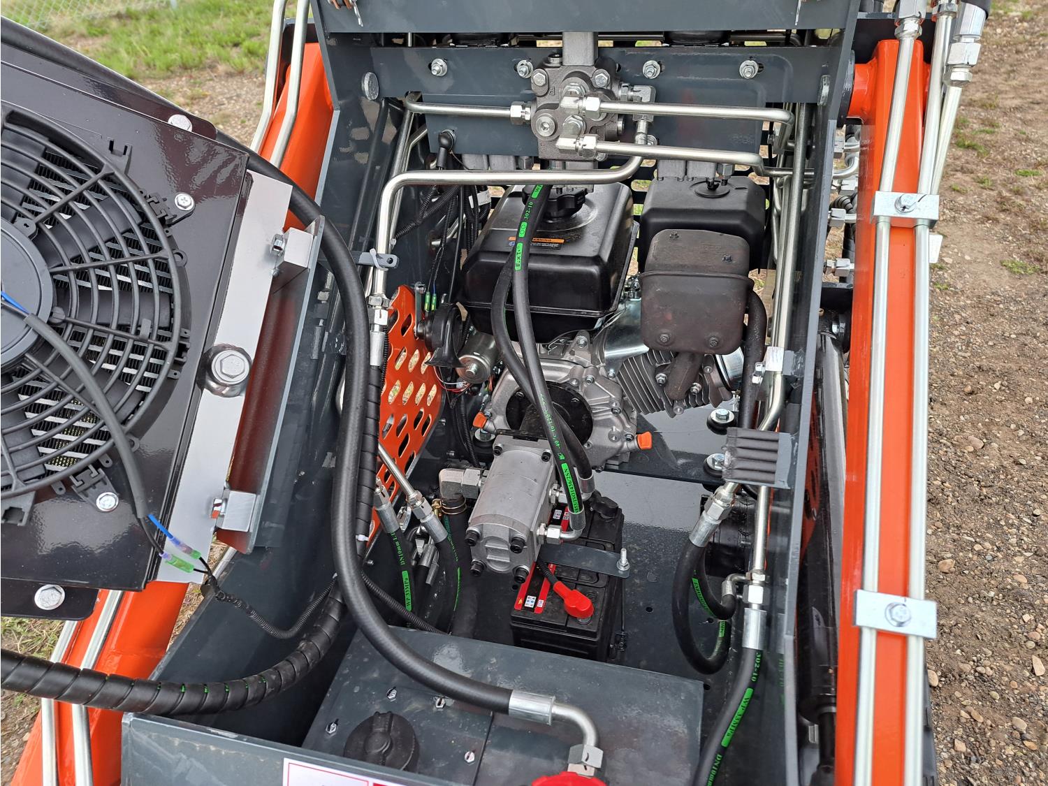 Open station, pilot controls, gas engine, 38 inch smooth bucket, hydraulic Q/C coupler, 1 auxiliary hydraulics, 6 inch rubber tracks