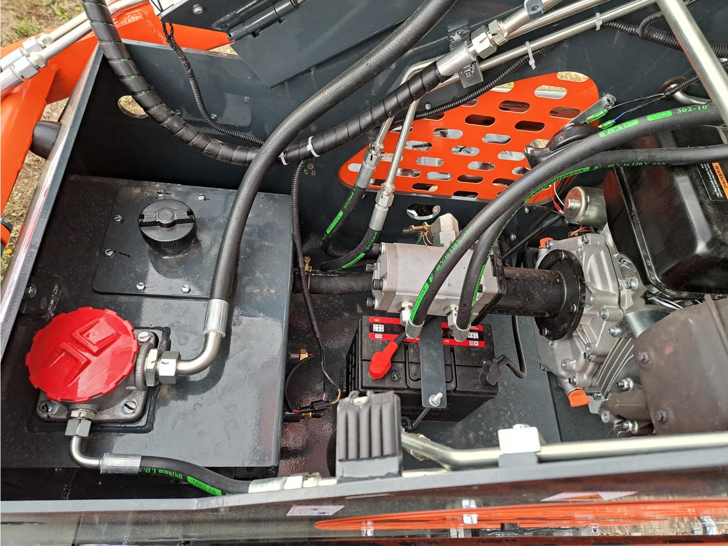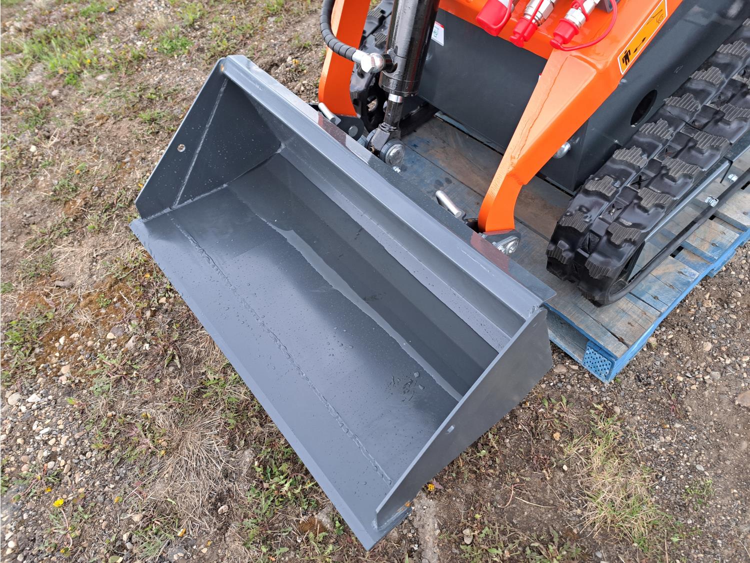 Open station, pilot controls, gas engine, 38 inch smooth bucket, hydraulic Q/C coupler, 1 auxiliary hydraulics, 6 inch rubber tracks