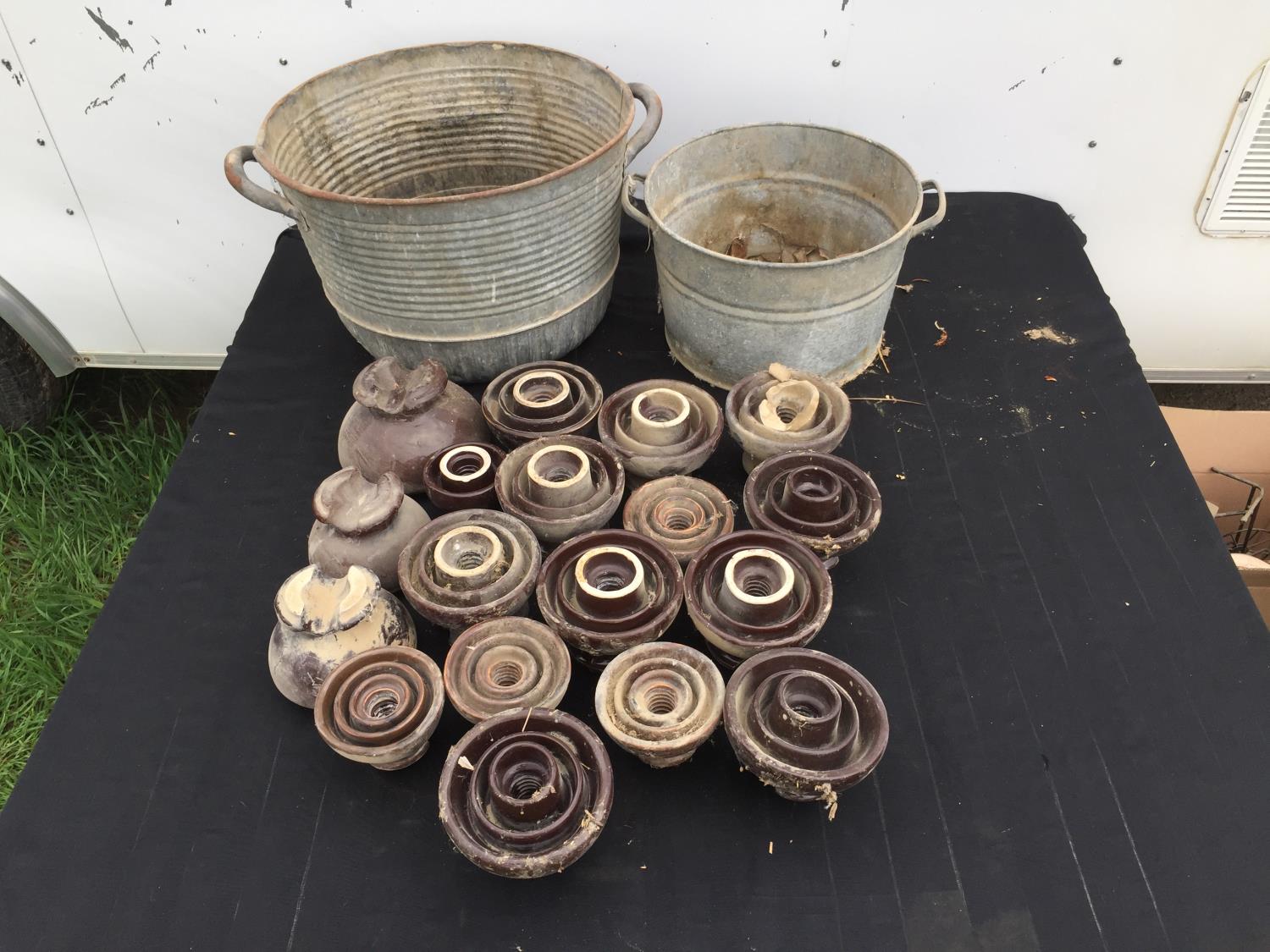 2498 (18) Glass Insulators and (2) Tin Pails