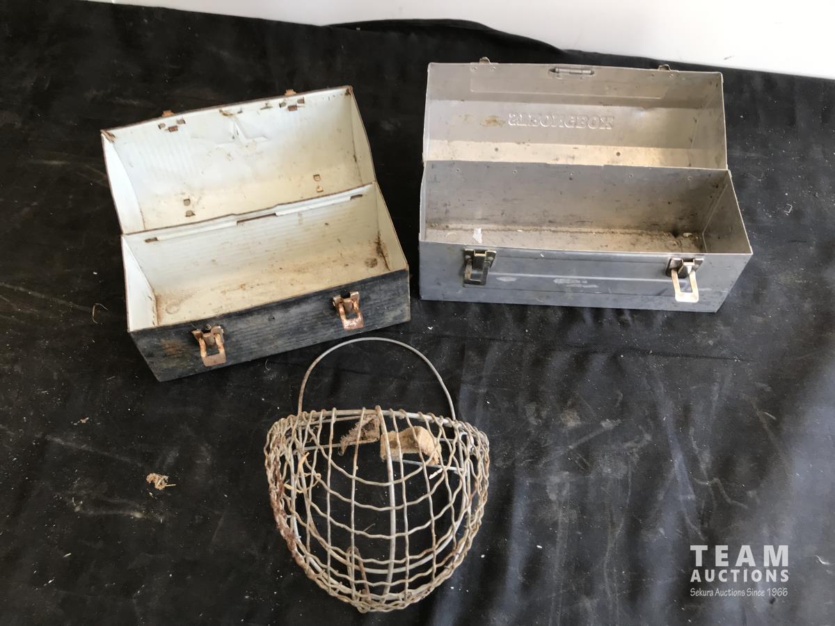 1619 (2) Metal Lunch Boxes w/ Wall Hanging Basket