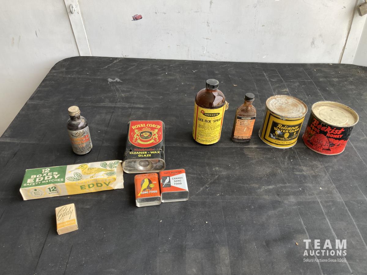1840 (3) Bottles, (5) Tins & Qty of Safety Matches