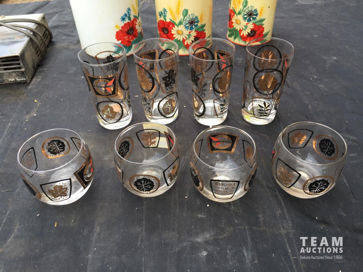 1751 (3) Tins, (8) Glasses & Termo Warmer