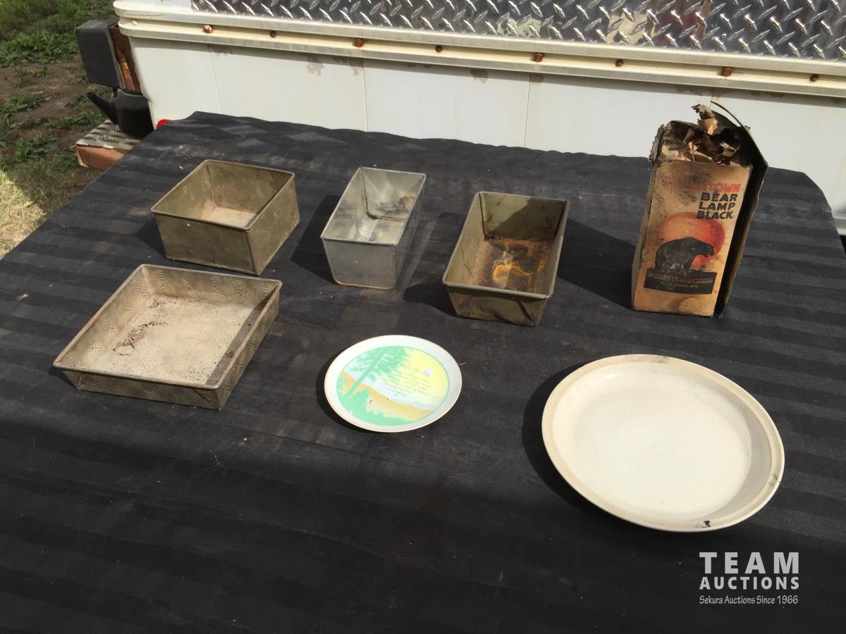 1803 (4) Cooking Pans, (2) Plates & Bear Lamp Black