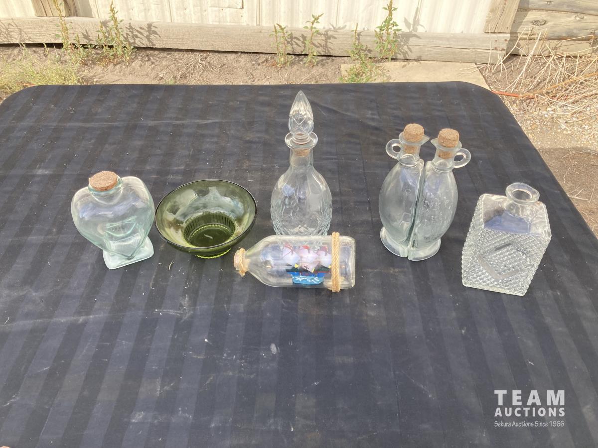 1935 (5) Glass Bottles, Ship in a Bottle & Glass Bowl