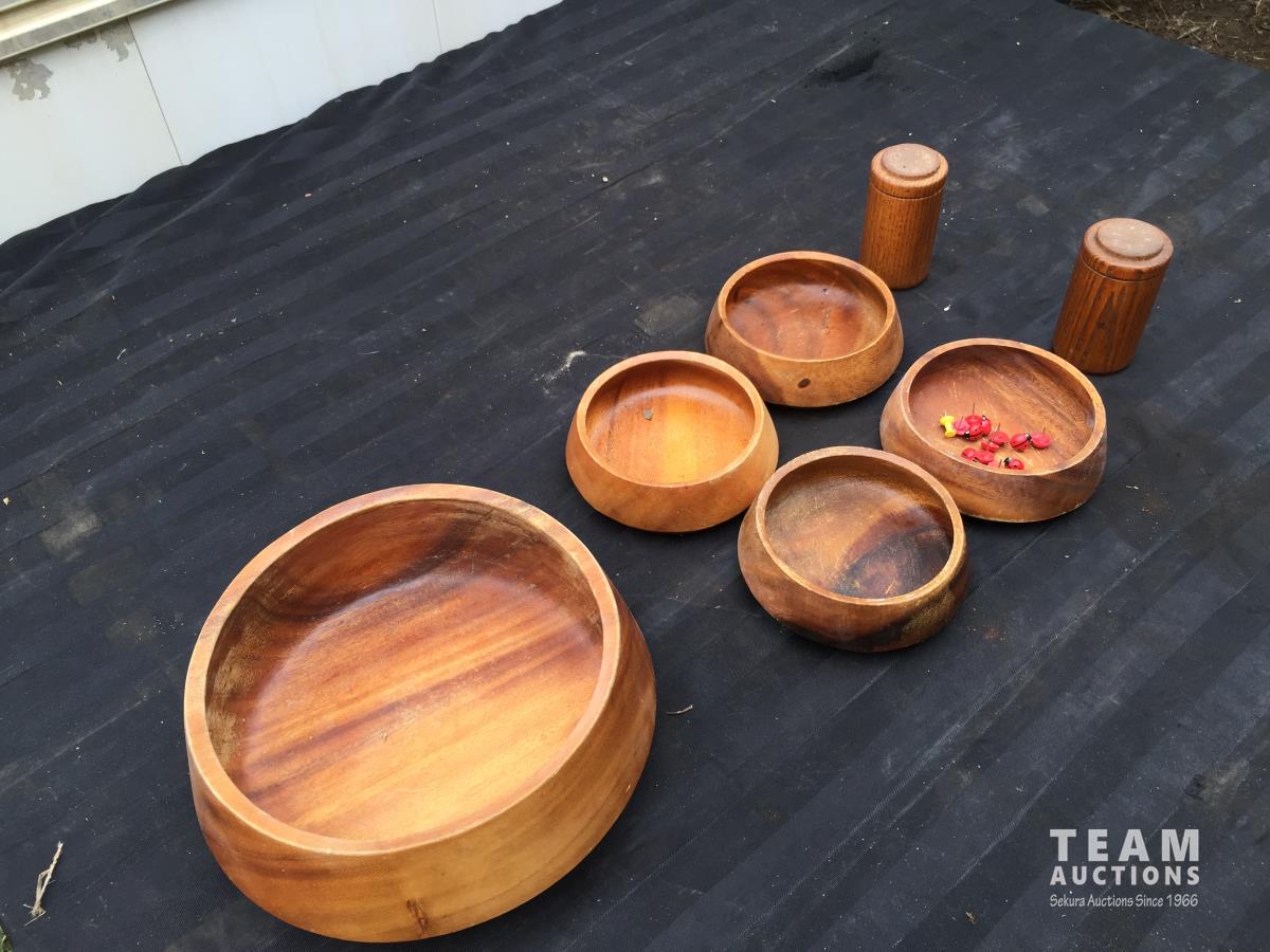 1809 (5) Wooden Bowls w/ Wooden Salt & Pepper Shakers