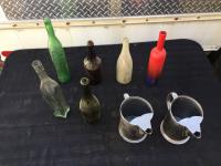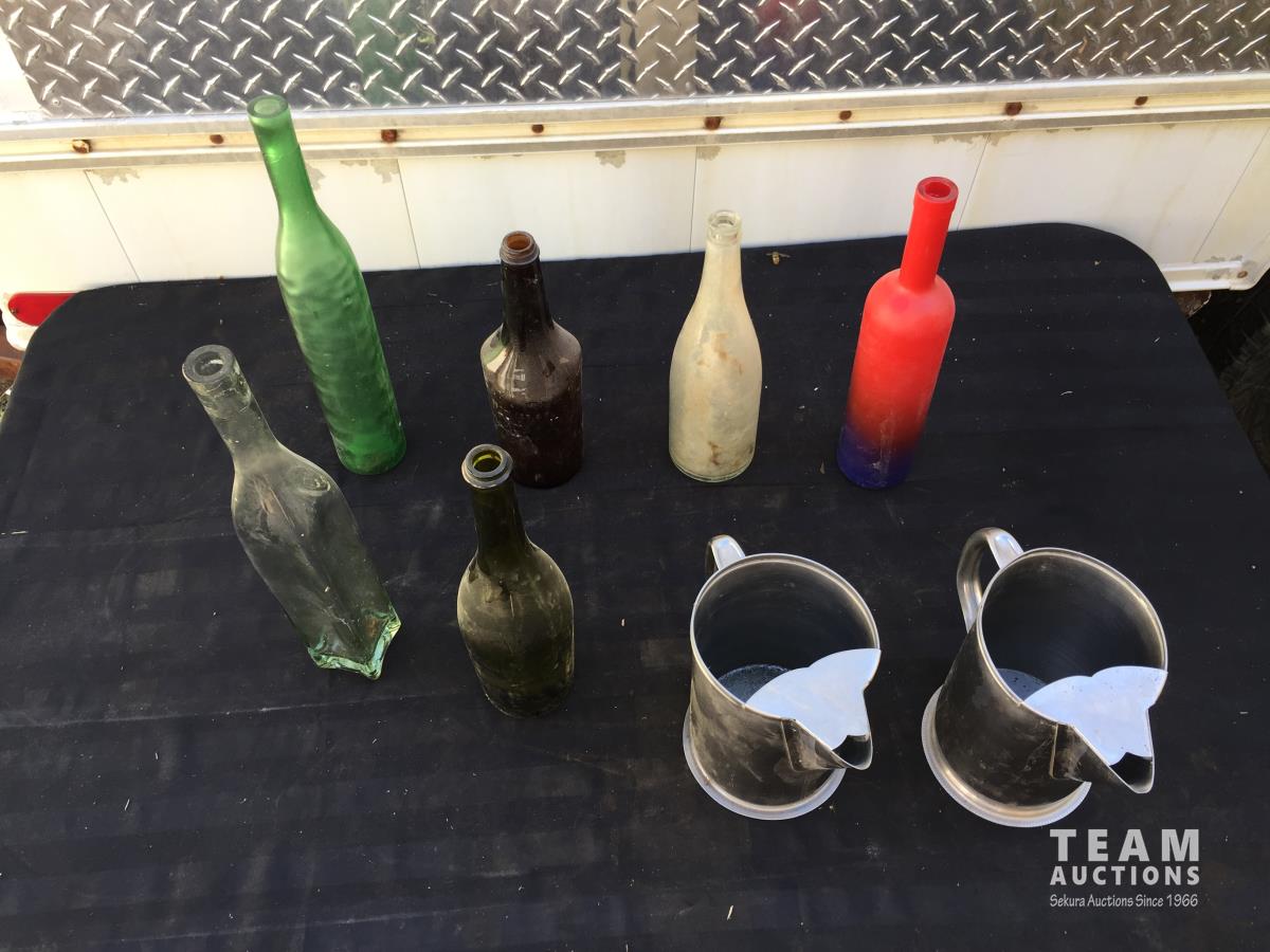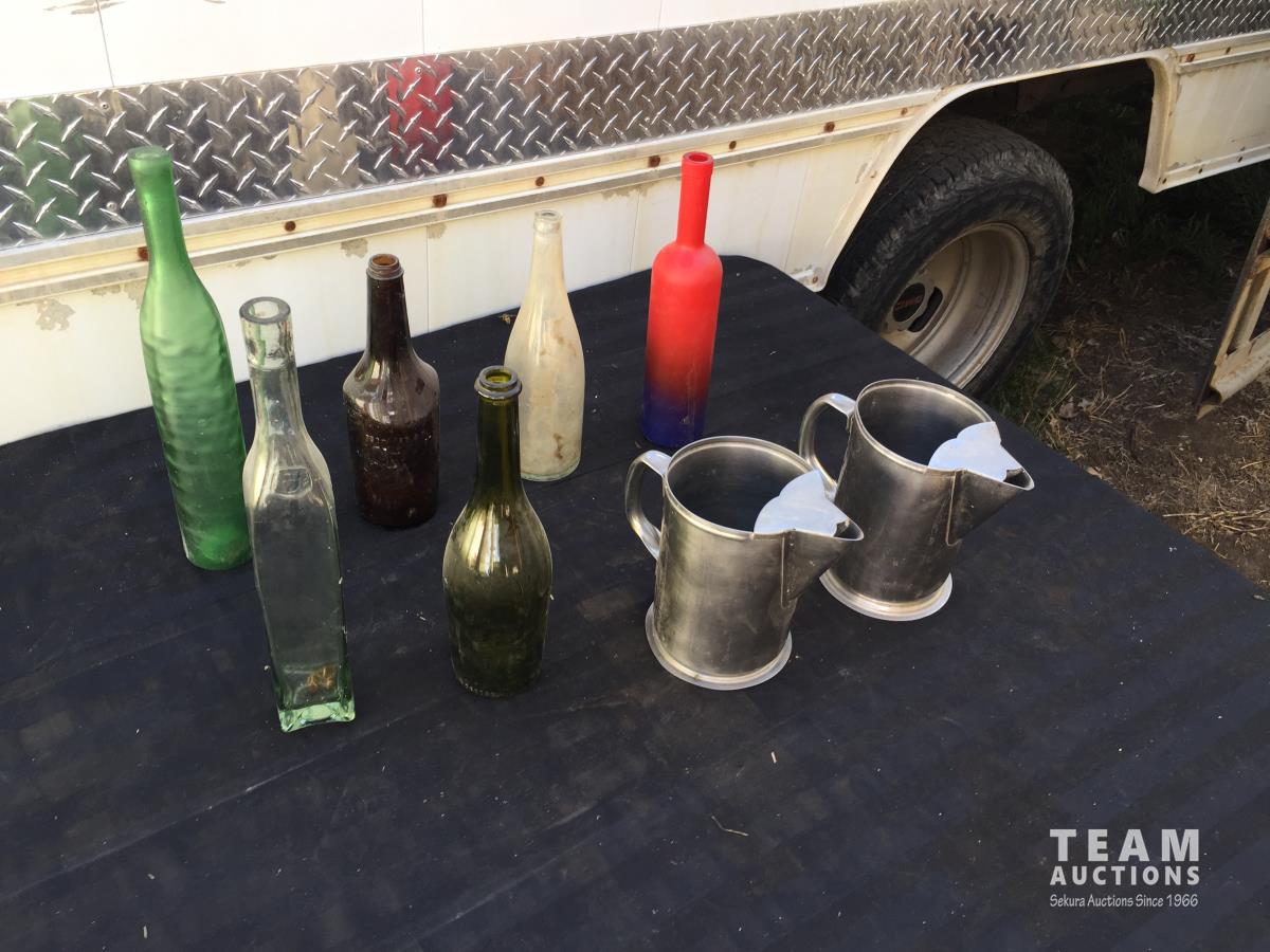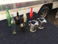 1822 (6) Glass Bottles & (2) Water Pitcher