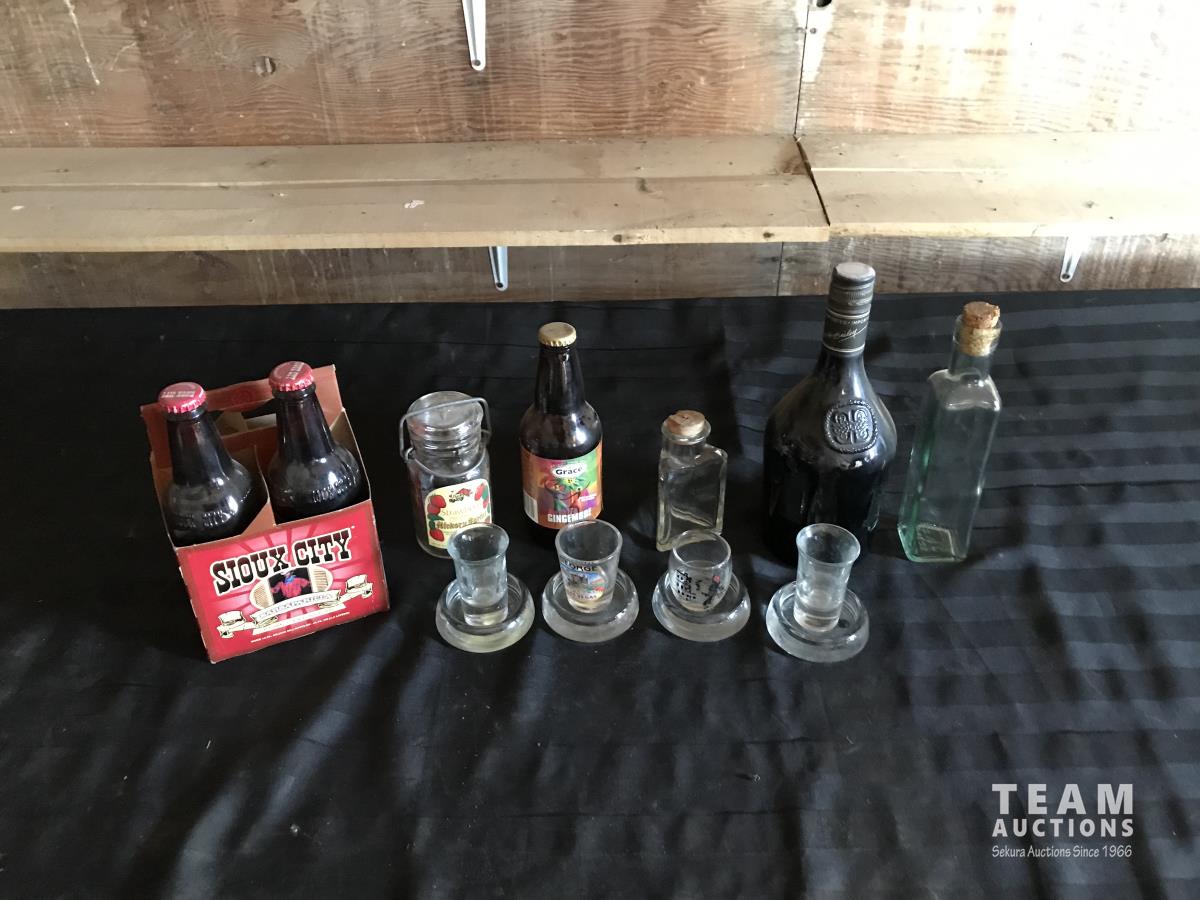 1664 (7) Glass Bottles W/ (4) Shot Glasses w/ Plates