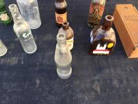 1202 (9) Glass Bottles & Wooden Bottle Box