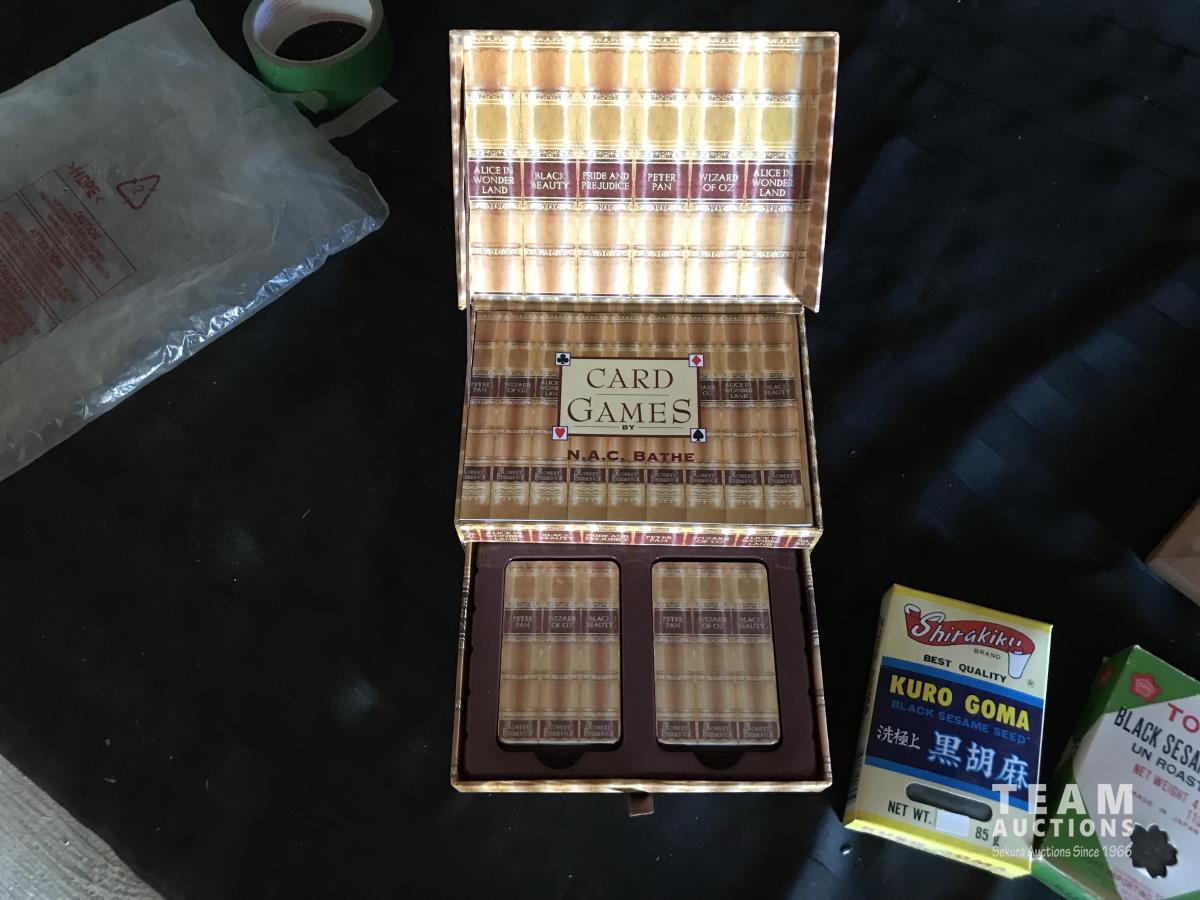 2198 Box of Card Games W/ (3) Boxes of Sesame Seeds & Feng Shui Zen Garden w/ Sea Shells