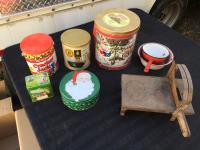 1147 Bread Cutter, (5) Tins, Metal Pot & Bowl