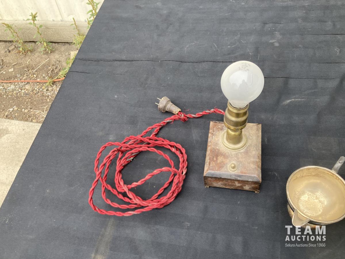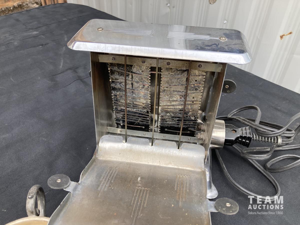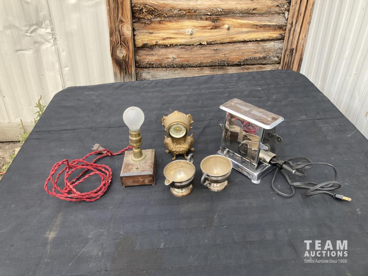1814 Desk Light, (2) Cups, Clock & Electric Toaster