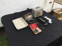 Razor, iron, space heater, tray, knife, handheld radios