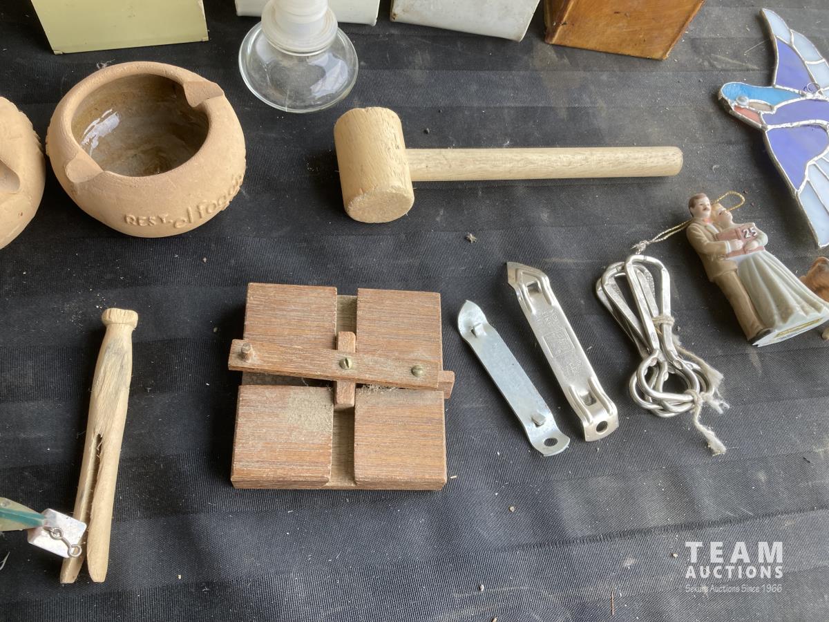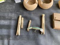 (4) toothpick holder, (4) clothes pins, bottle openers