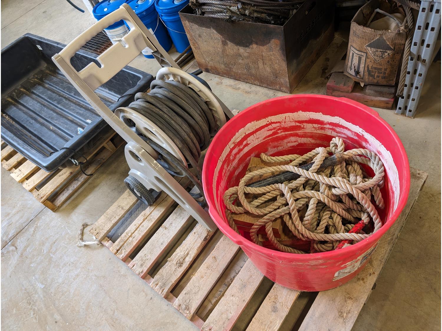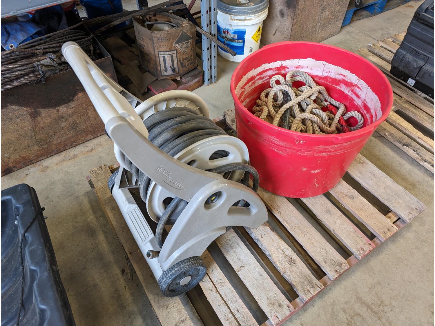 38 Garden Hose Reel, Plastic Tub and Rope