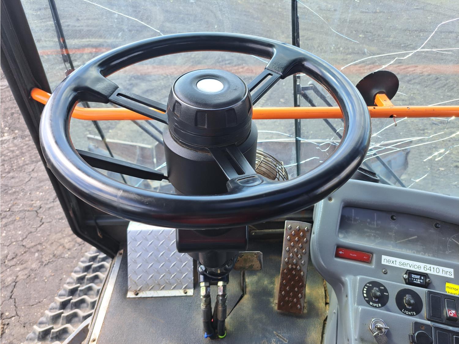 5.9 L Cummins diesel engine, automatic transmission, 8 way 11 ft front blade with hydraulic wings, 26 inch wide rubber tracks