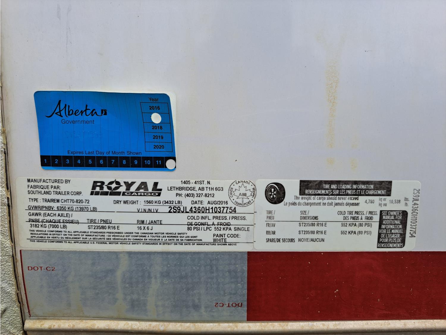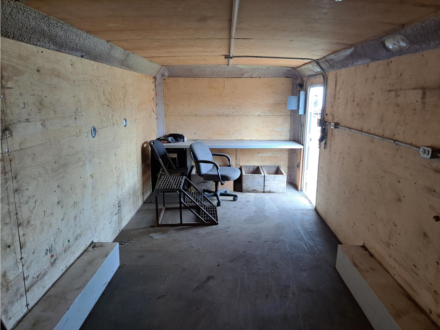 96 inch interior width, 80 inch interior height, barn doors, spring suspension, insulated and wired 110 volt, 7000 lb axles, 235/80R16 tires