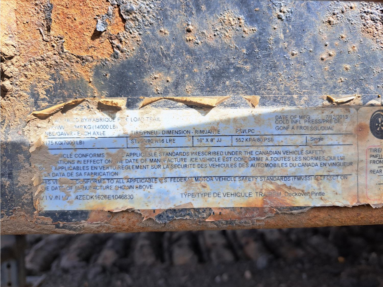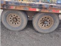 96 inch wide deck, steel deck, slide in ramps, spring suspension, rub rails, stake pockets, 7000 lb axles, 235/80R16 tires