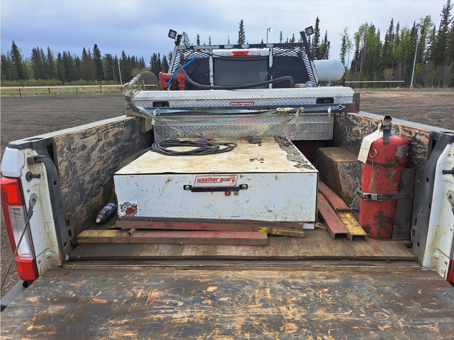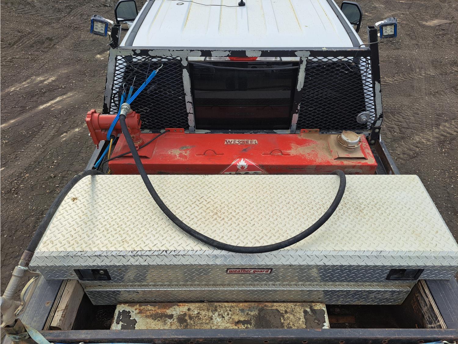 6.2 L, V8, gas, 6 speed automatic transmission, P/W, P/L, A/C, heated mirrors, running boards, 8 ft box, steel headache rack, aluminum toolbox, c/w steel rat pack & fuel tank with electric pump, 275/70R18 tires