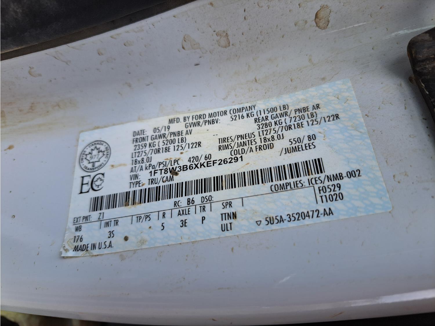 - 1FT8W3B6XKEF26291