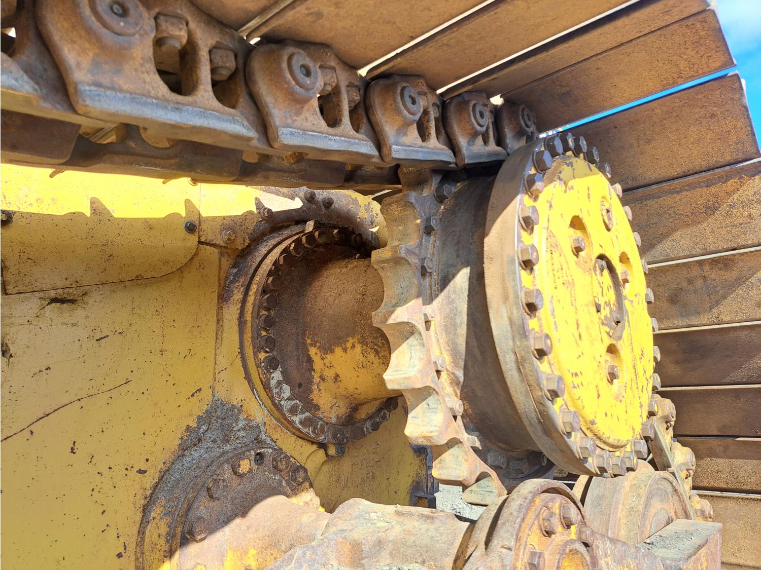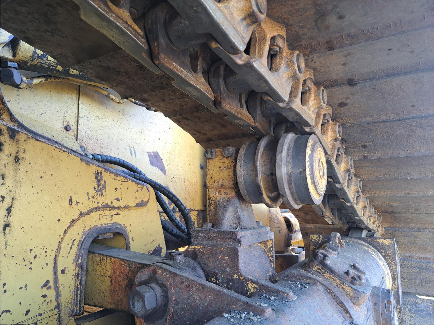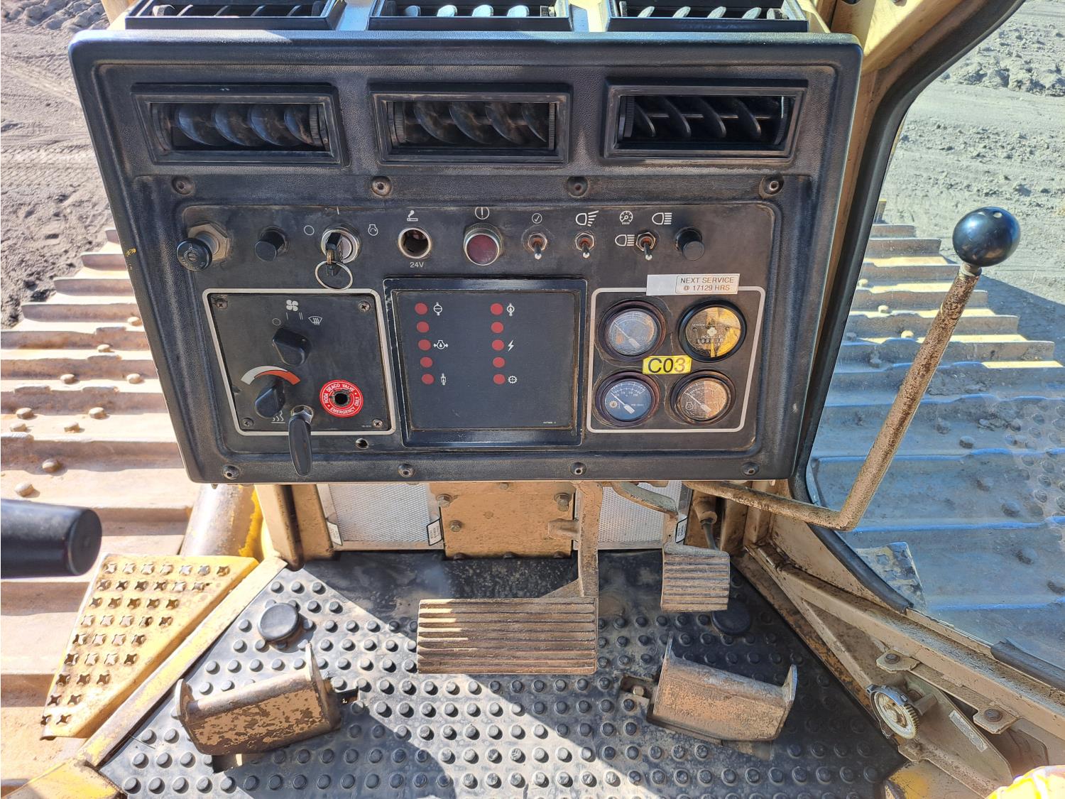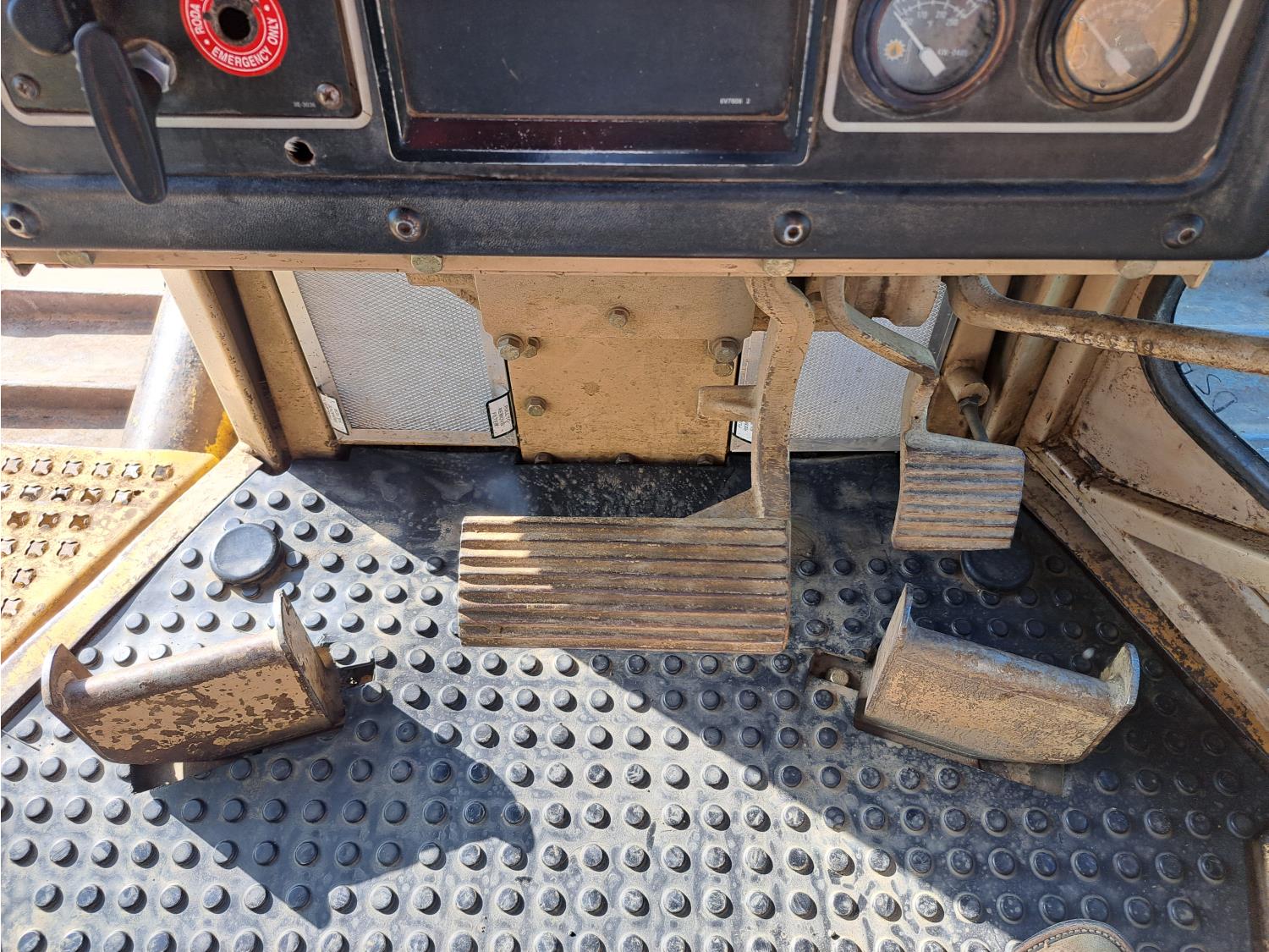 Enclosed cab, air ride seat, diesel engine, powershift transmission, 13 Ft 4 way angle dozer, winch, 34 inch track pads, single grousers
