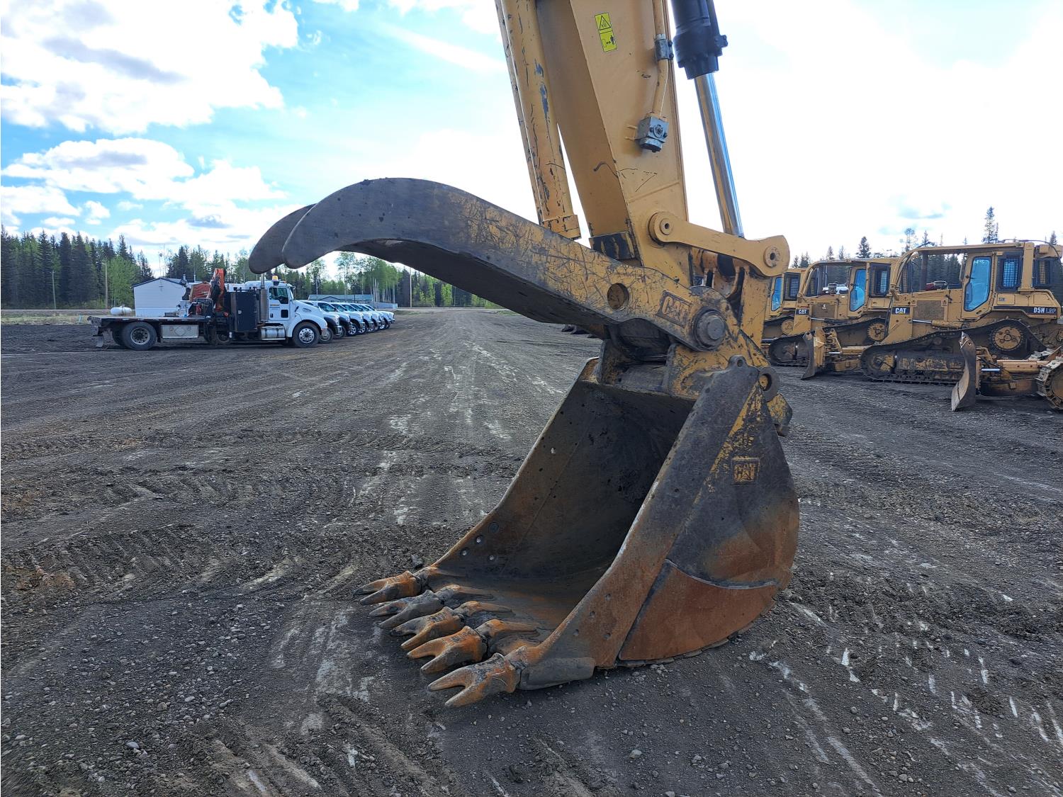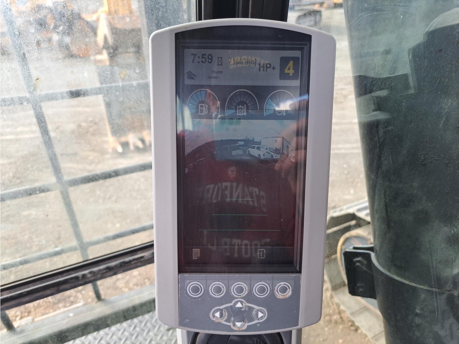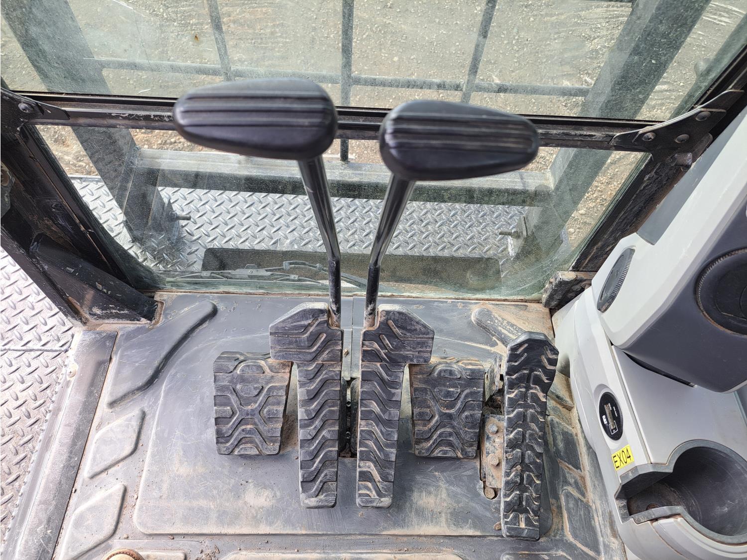 Enclosed cab, A/C, air ride seat, rear view cameras, 48 inch dig bucket, hydraulic thumb, 12 Ft 10 inch stick, catwalks, aux hydraulics, 34 inch track pads, triple grousers