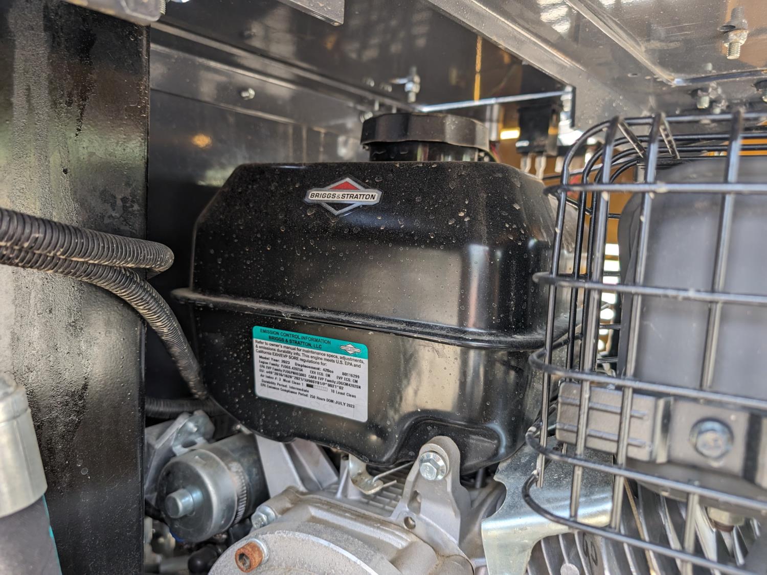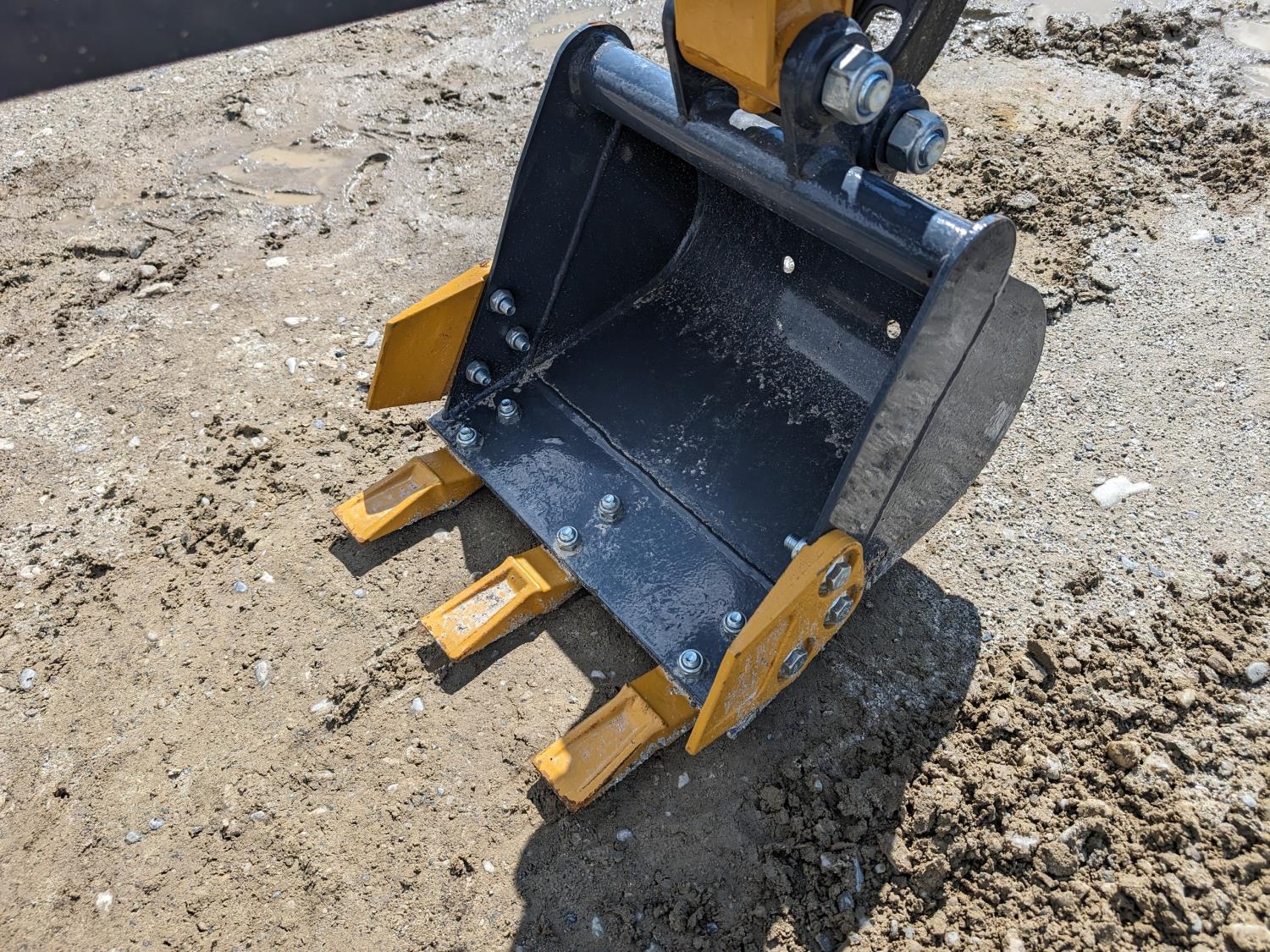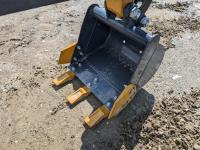 Open station, pilot controls, Briggs & Stratton 13.5 HP gas engine, LED work lights, 16 inch dig bucket, manual coupler, manual thumb, 1 auxiliary hydraulics, 31 inch stick, swing boom, backfill blade, 35 1/2 inch back blade, 7 inch rubber tracks