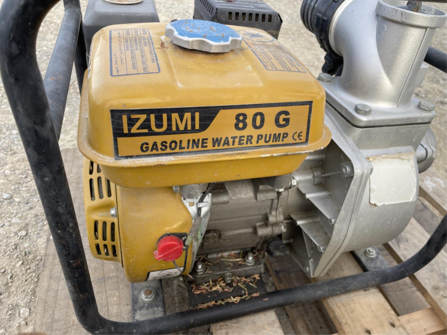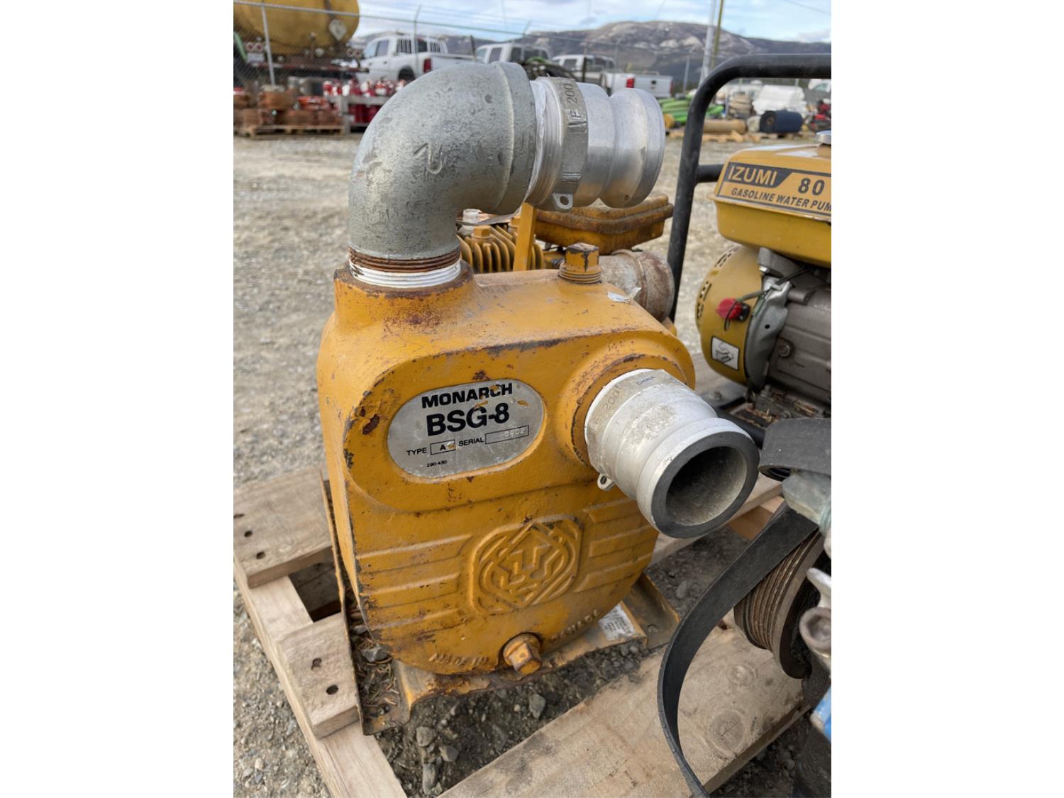Monarch BSG-8 1-1/2 electric water pump, Izumi 80G 3 inch gasoline water pump, under hood air compressor