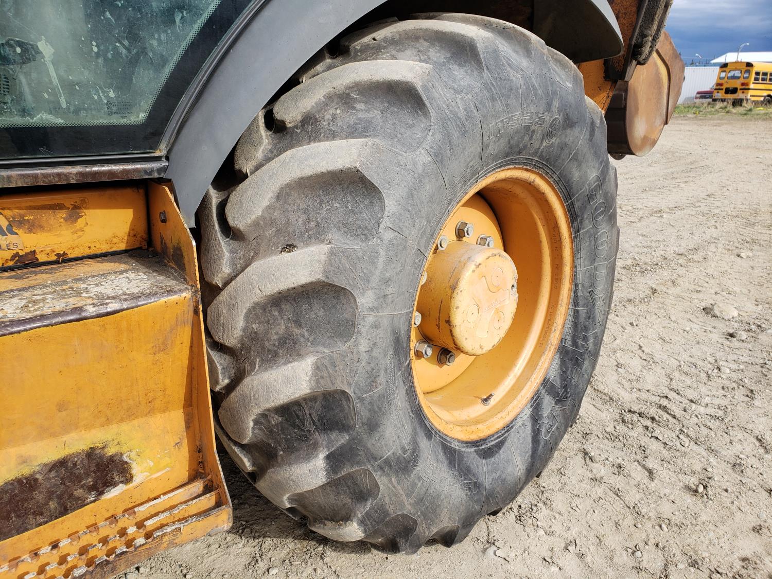 Enclosed cab, hydro transmission, 82 inch smooth loader bucket, stick, 4in1 bucket, 12-16.5 front tires, 19.5L-24 rear tires