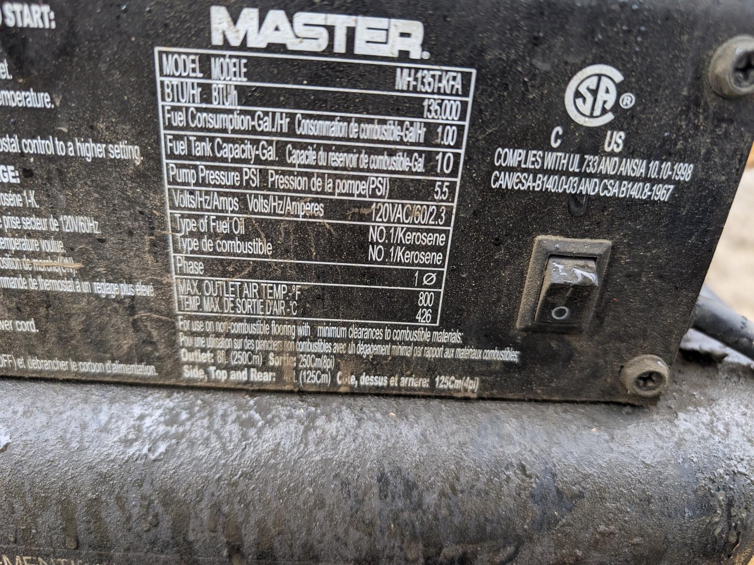 Reddy Heater RC150F 150,000 BTU diesel heater, Master MH-135T-KFA 135,000 BTU diesel heater