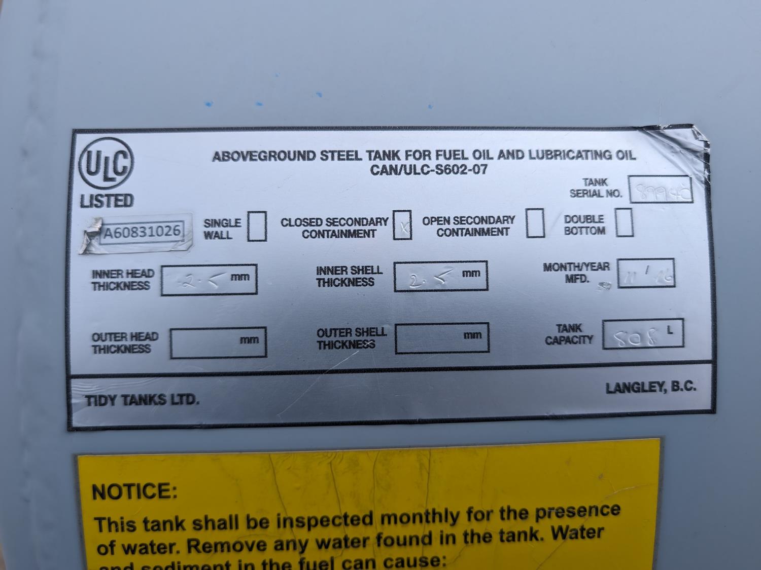157 2016 Tidy Tanks 808 Litre Fuel Storage Tank