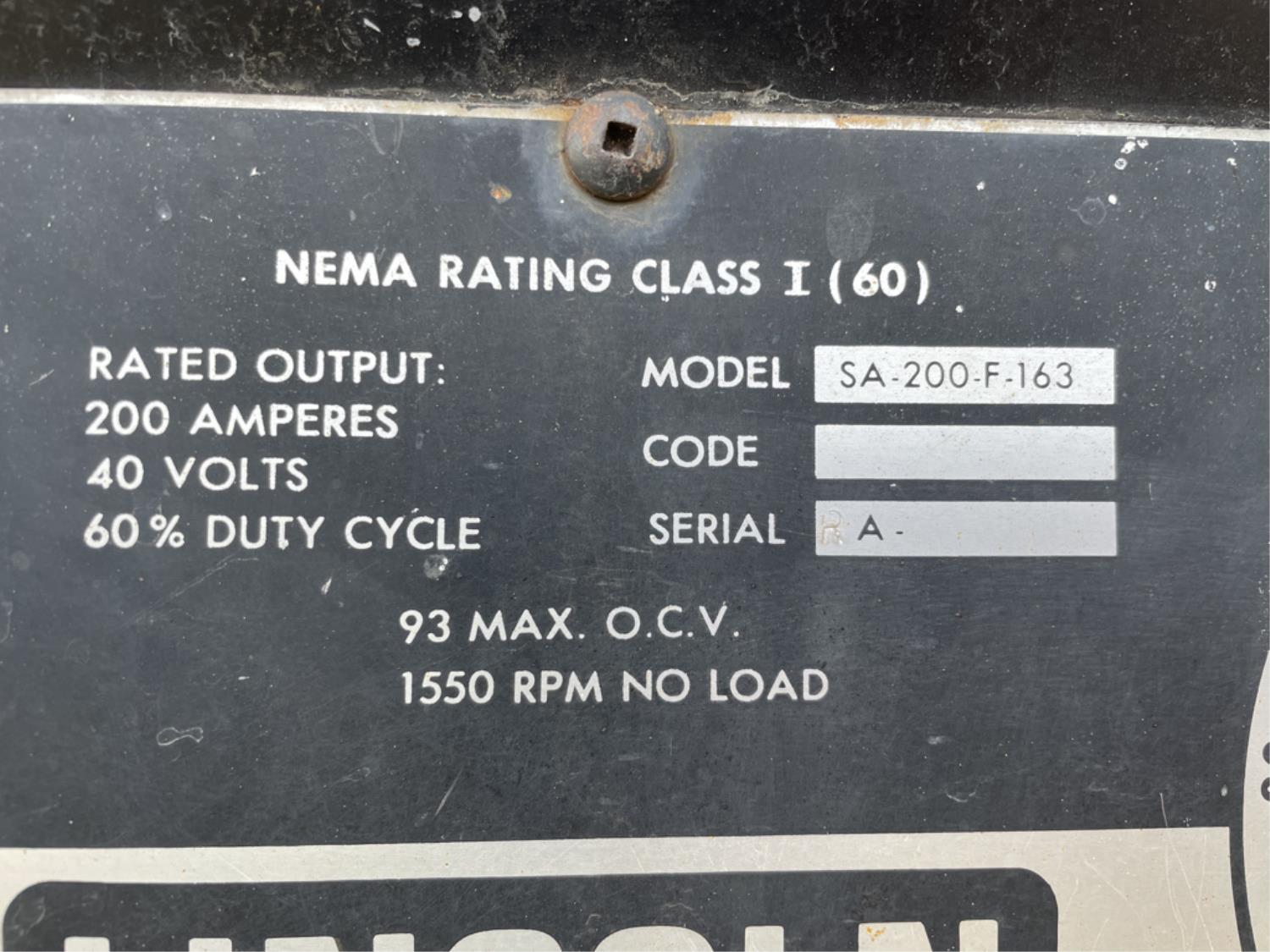 101 Lincoln Electric SA200F163 Gasoline Welder
