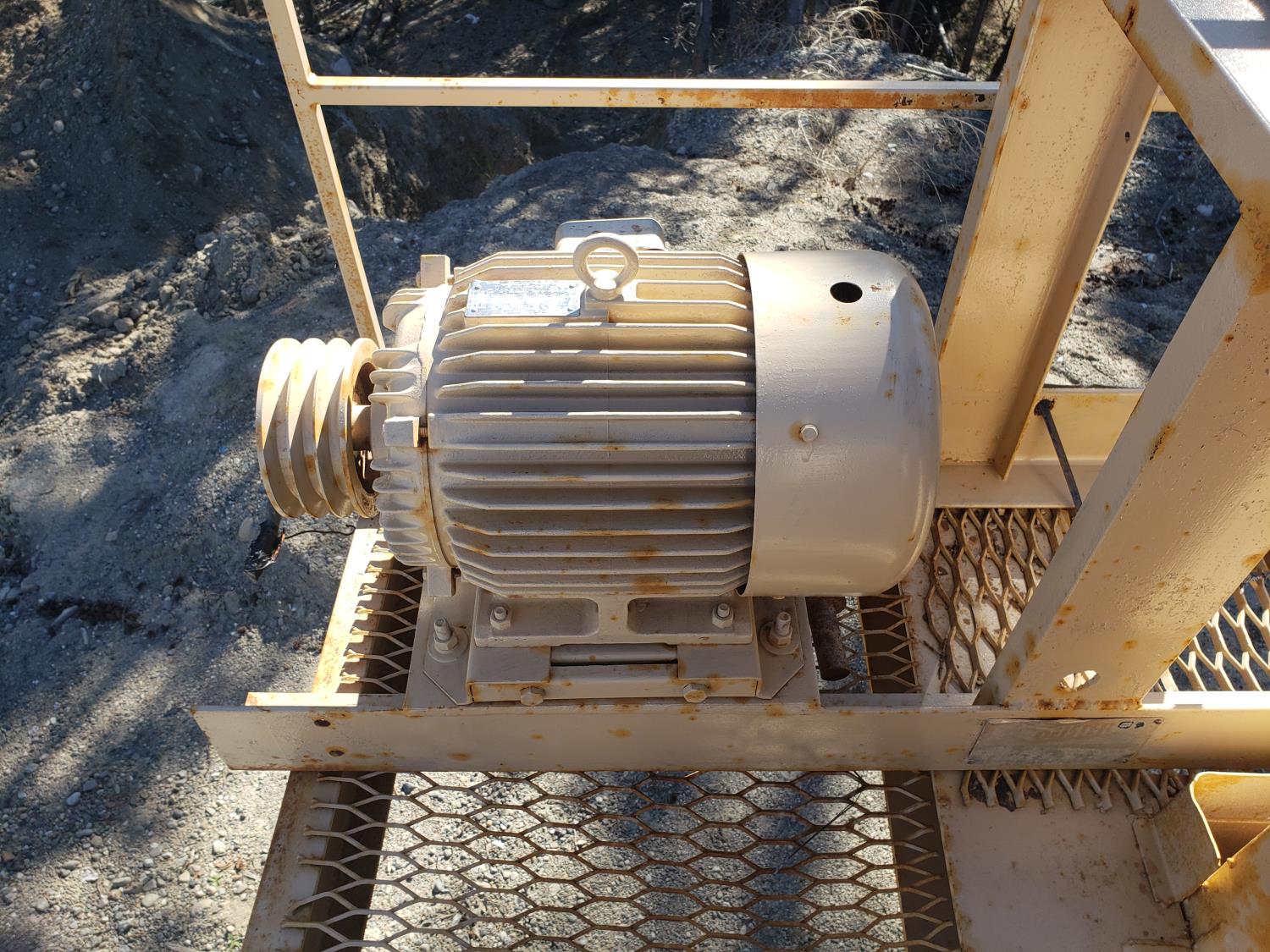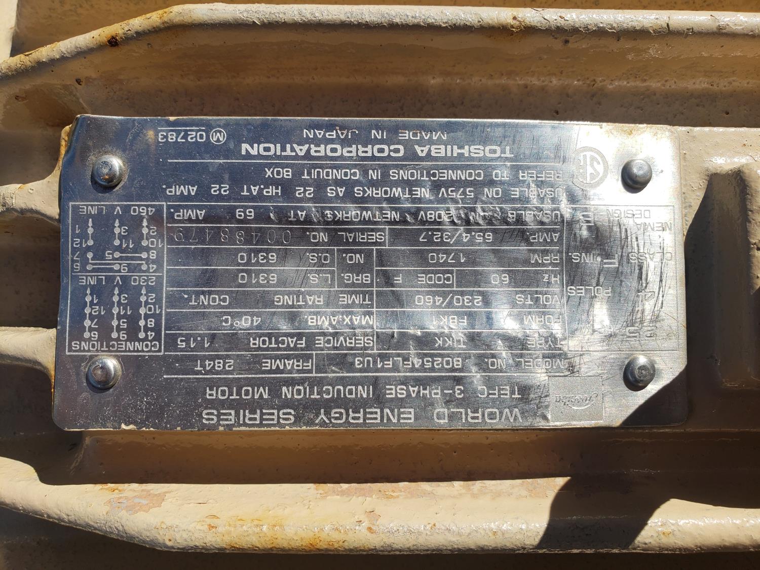 skid mounted 4X12 ft 3 screen shaker deck, Toshiba electric motor, 25 HP, 230/460 V, 60 Hz, 3 phase,