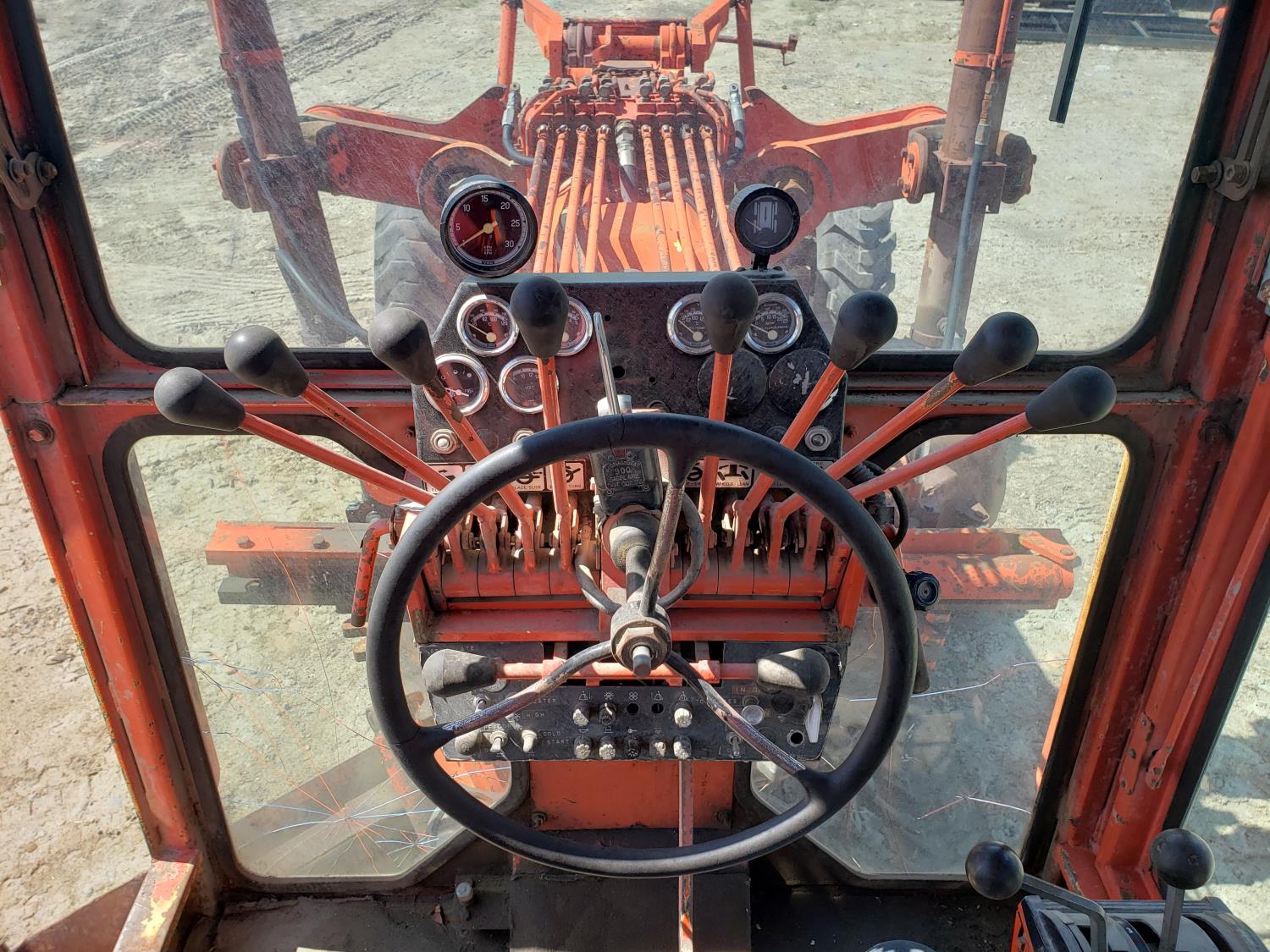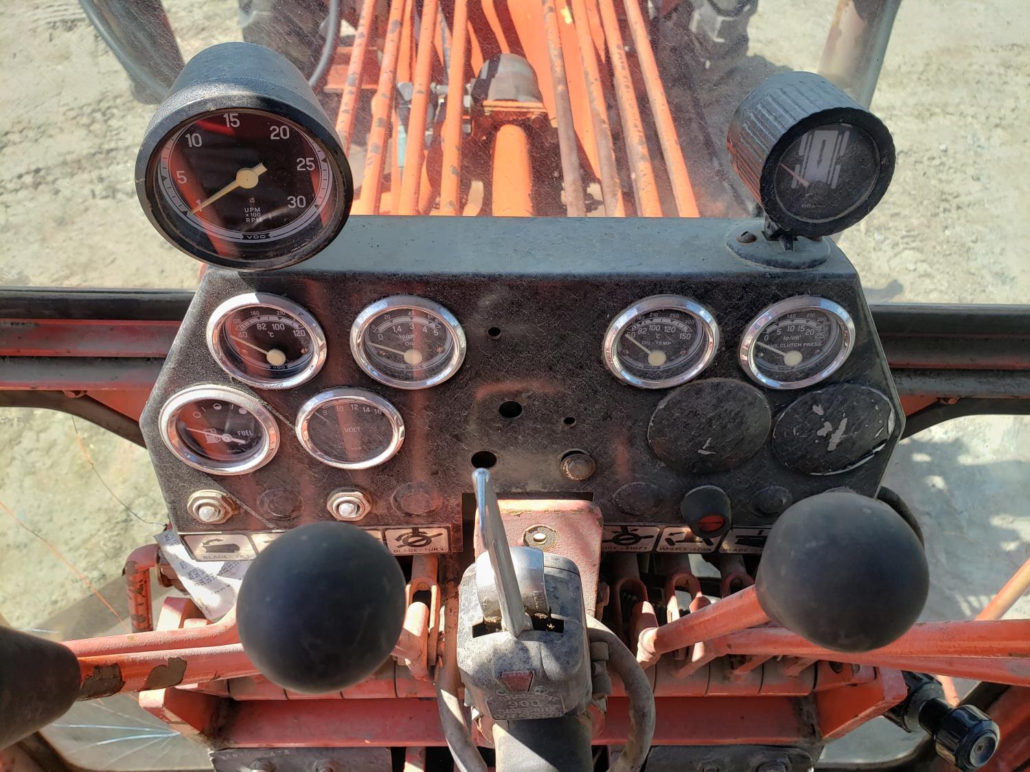Enclosed cab, 12 Ft moldboard, Detroit diesel, 3 speed powershift transmission, hi/low range, front scarifier, 13.00-24 tires
