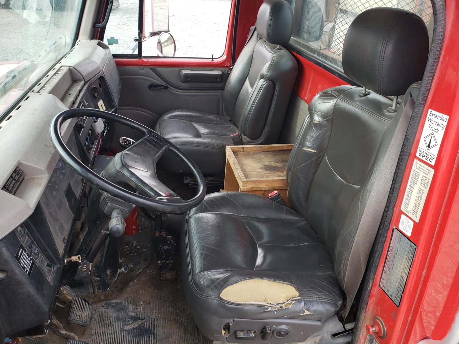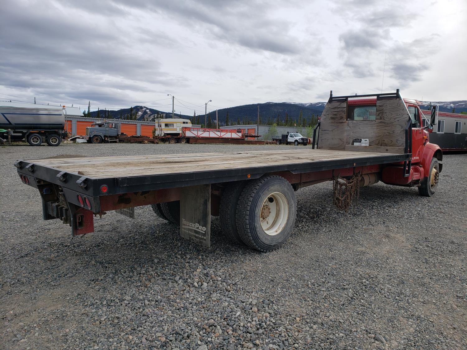 International DT466E 7.6 L 6 cylinder diesel engine, 7 speed manual transmission, 23 ft deck, spring suspension, 10,000 lb front axle, 18,999 lb rear axles, 254 inch WB, 11R22.5 tires