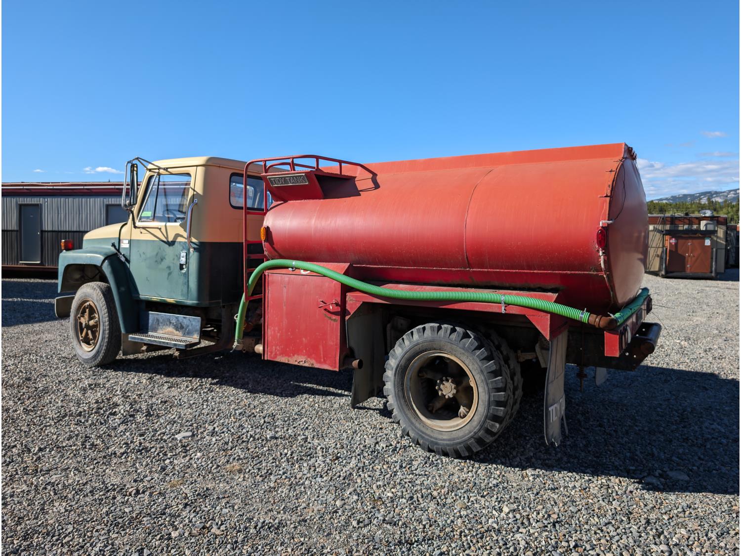 International V8 gas engine, 5 speed manual transmission, Tidy Tank tank, 170 inch WB, 8.25-20 tires